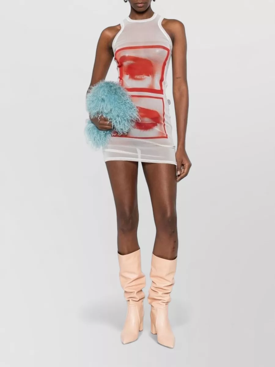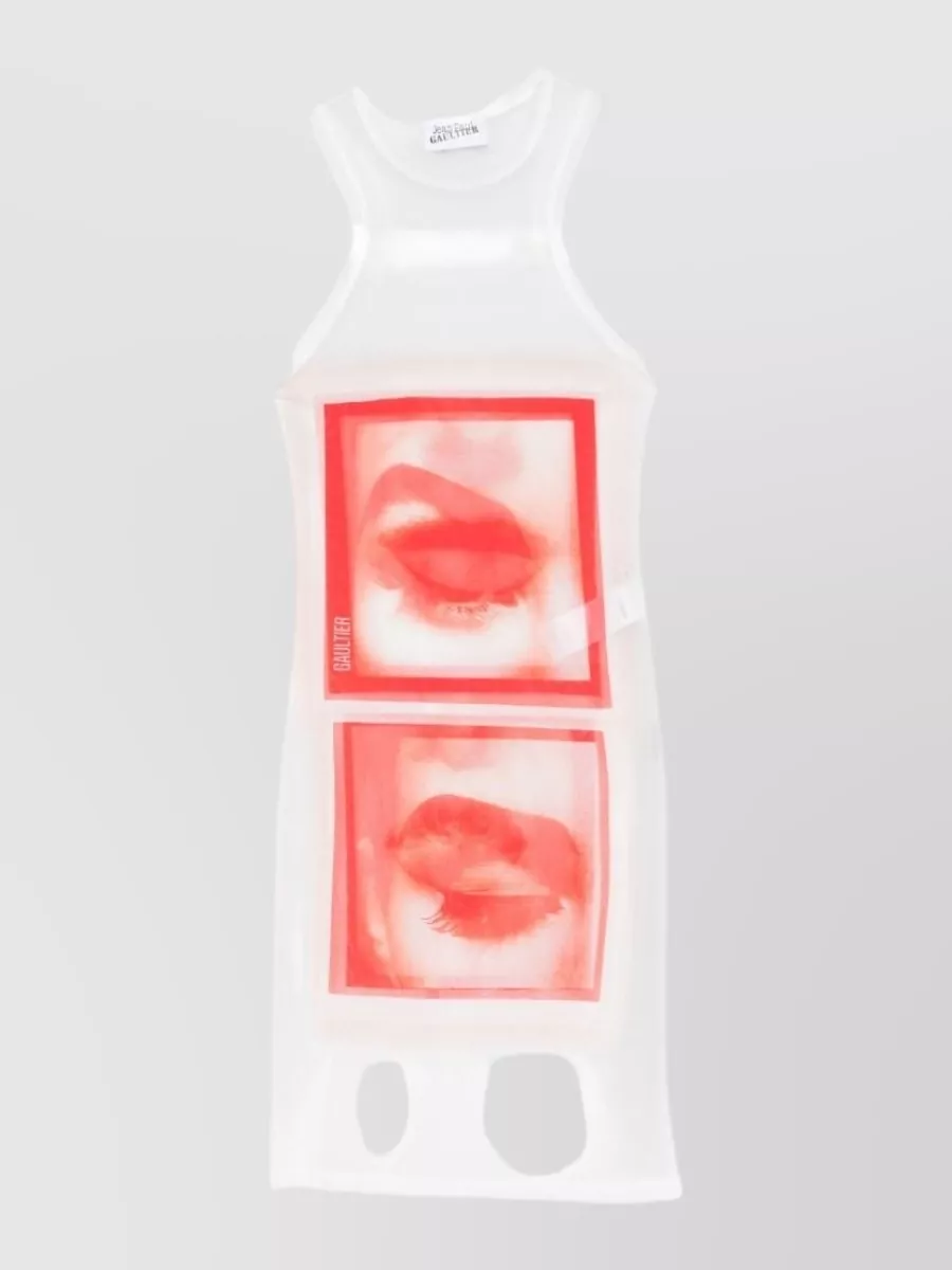 Jean Paul Gaultier mesh tank dress eyes lips print