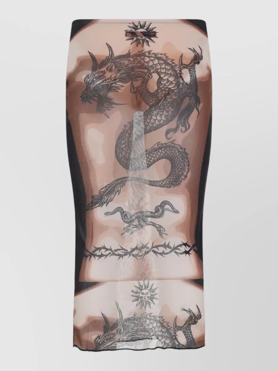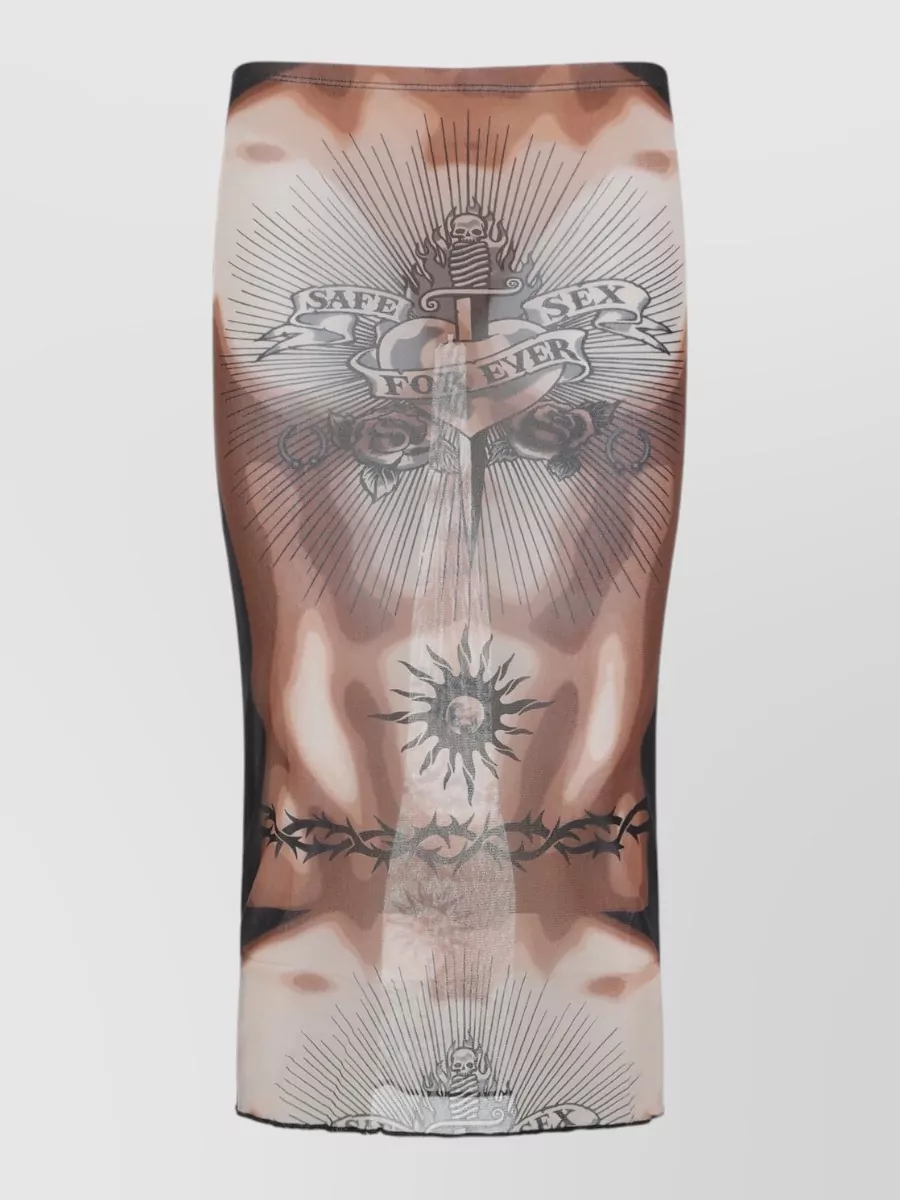 Jean Paul Gaultier medallion print mesh midi skirt