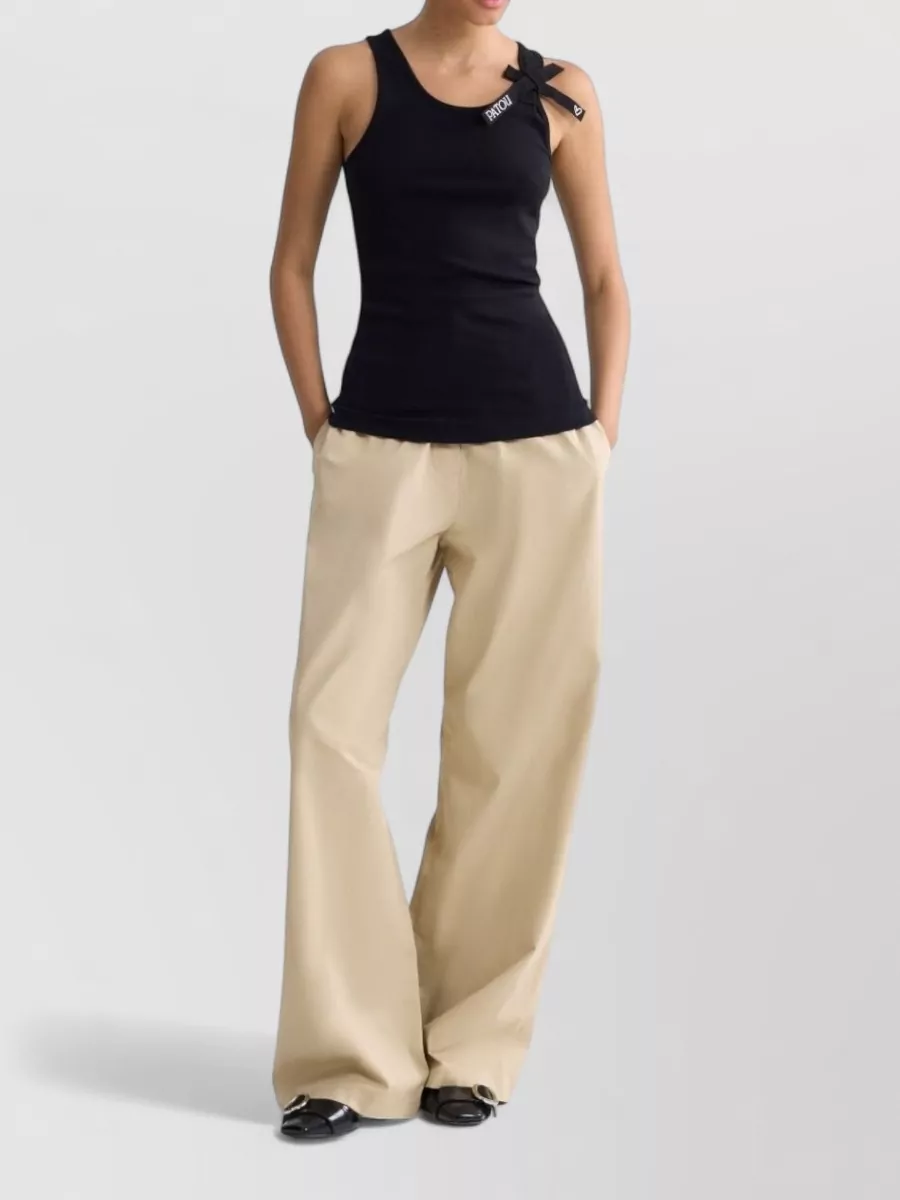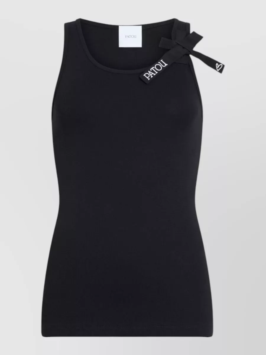 Patou cotton fine ribbed scoop neck sleeveless logo print tank top