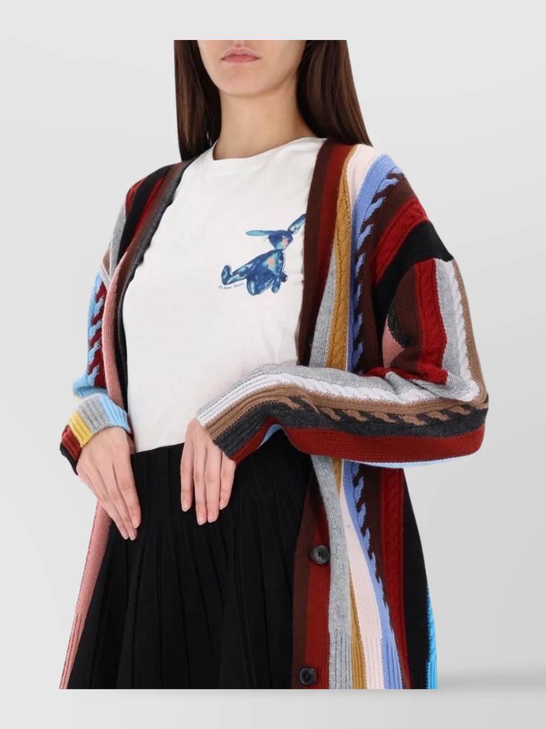 Paul Smith abstract pattern v-neck top ribbed texture