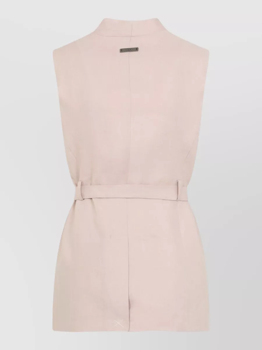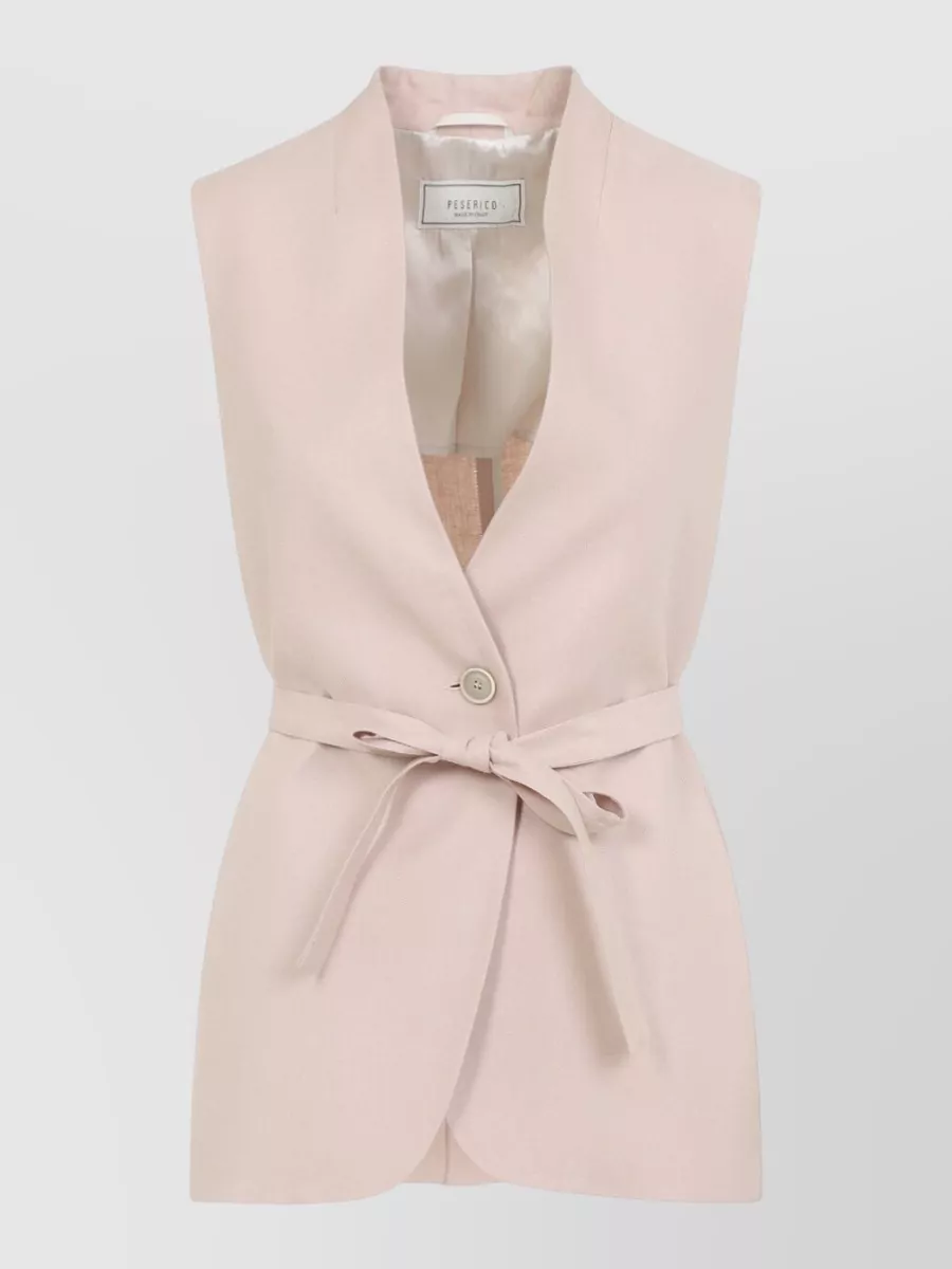 Peserico belted waist sleeveless jacket v neckline
