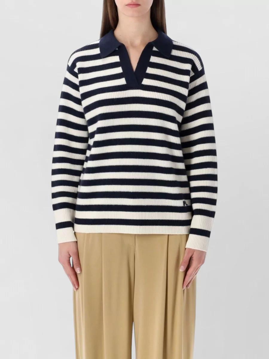 striped cashmere marine knit polo sweater