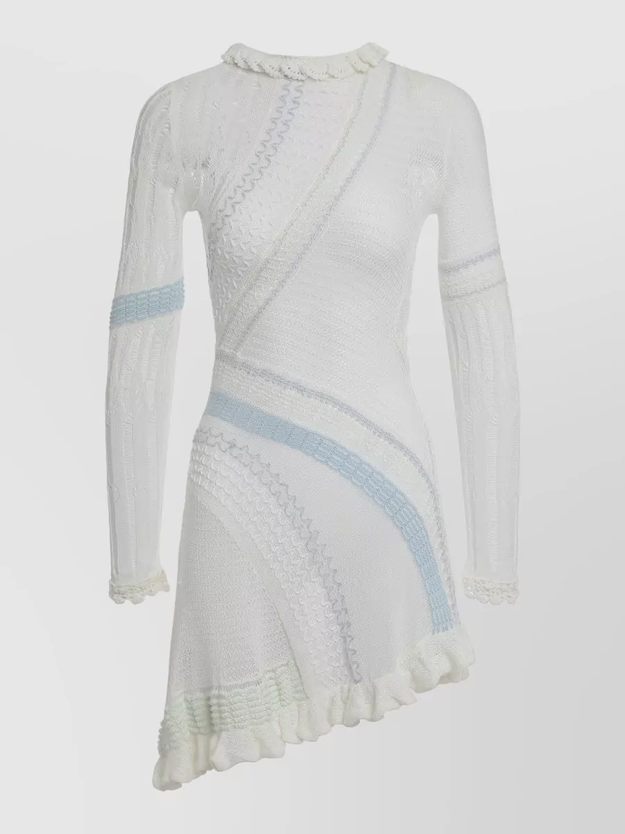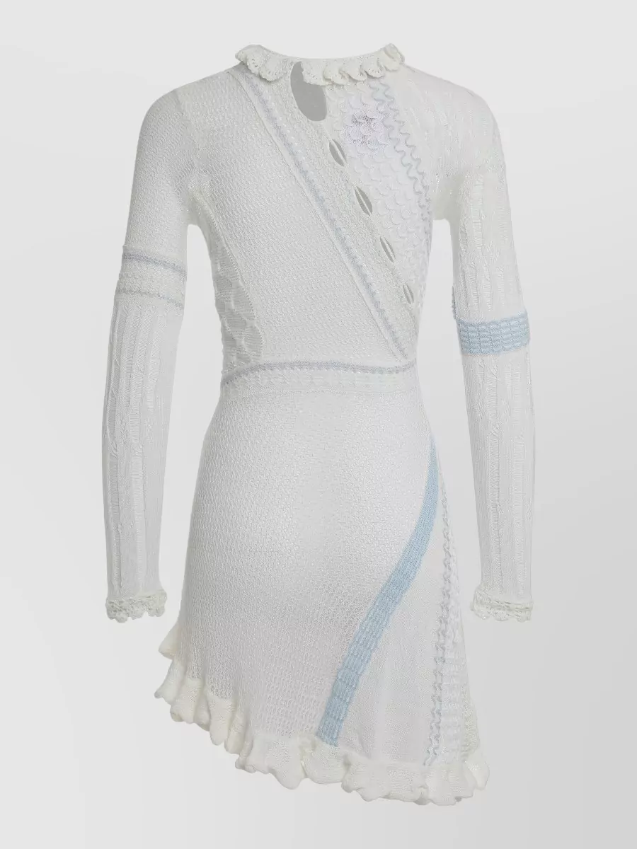 knitted dress asymmetric ruffles contrasting panels