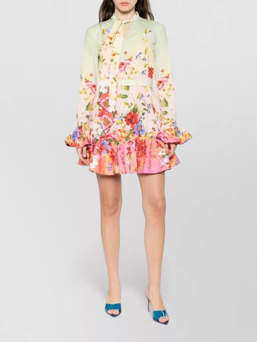 v-neckline fitted silhouette mini length sheer long sleeves