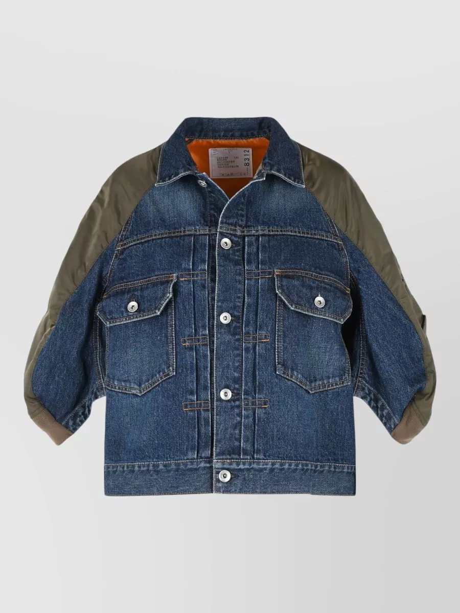 Sacai cotton and nylon blend t-shirt with balloon sleeves