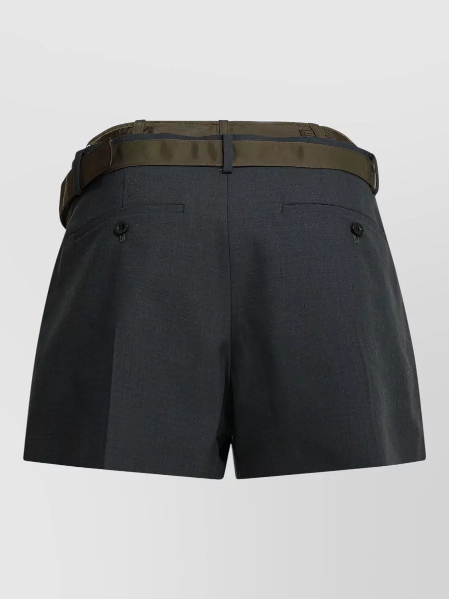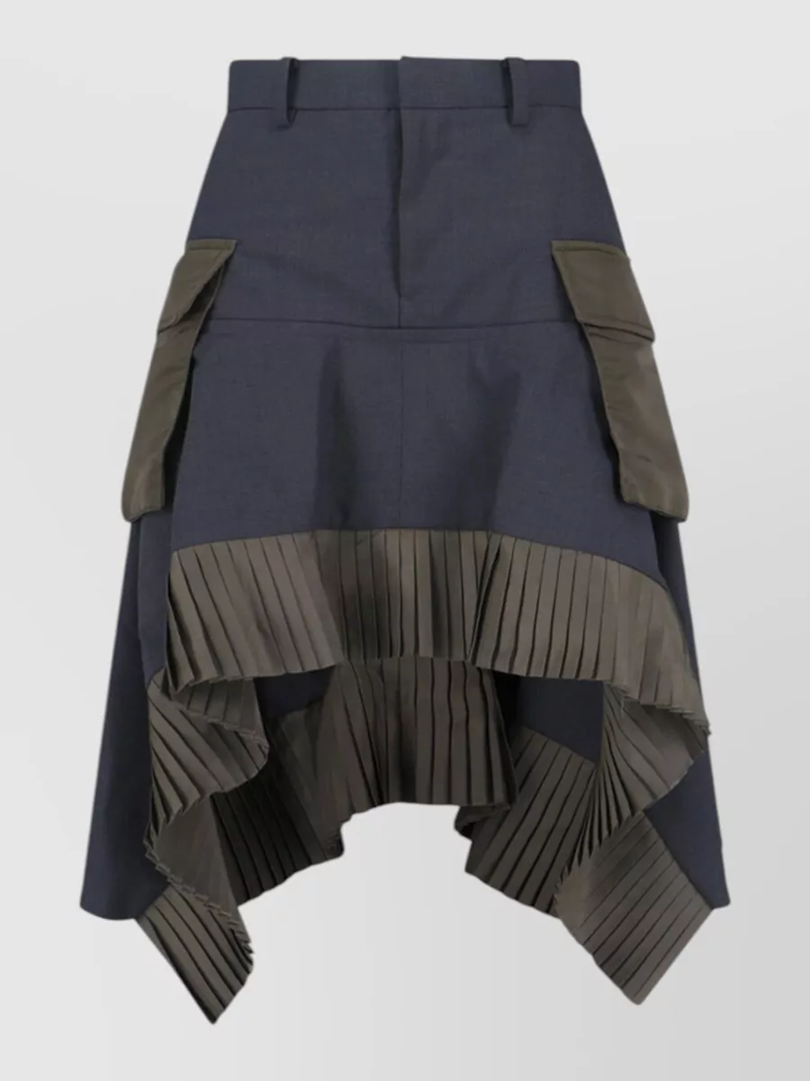 Sacai short sleeve v-neck sweater with ribbed texture and front pockets