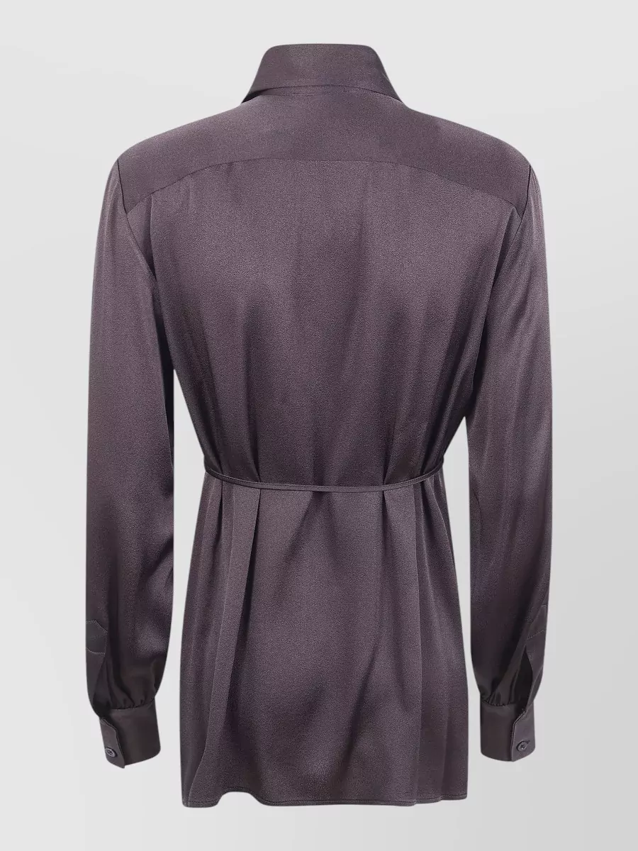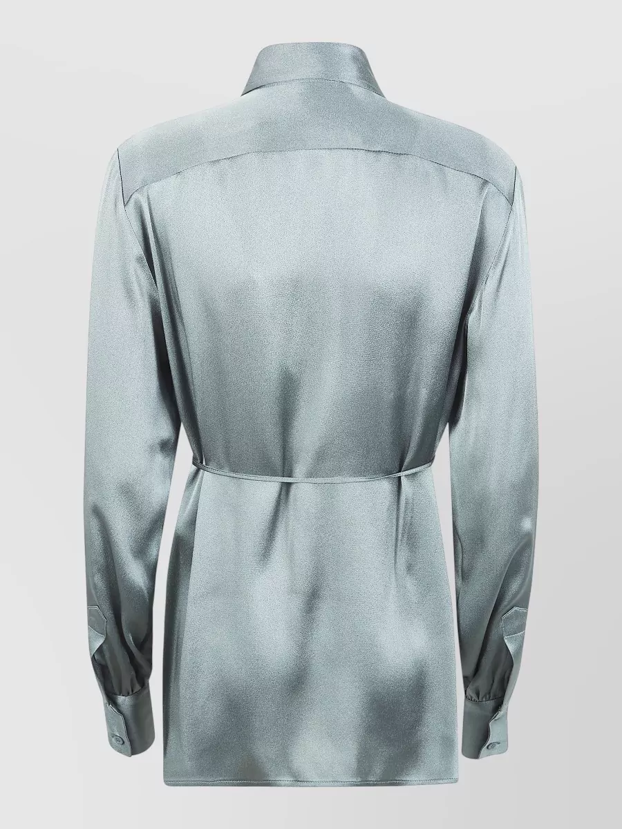 shirt tie waist collared neck long sleeves