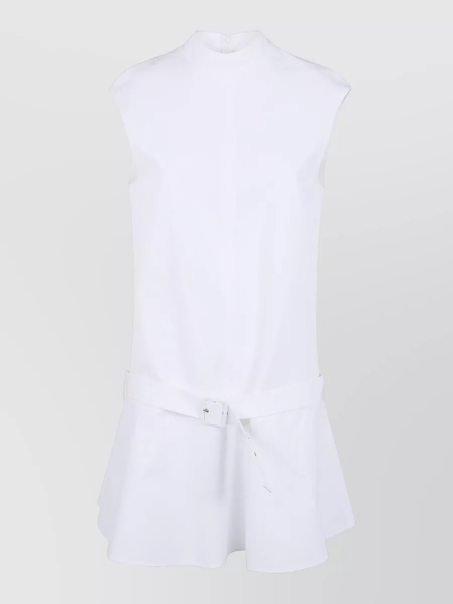 cotton minidress belted waist flared hem