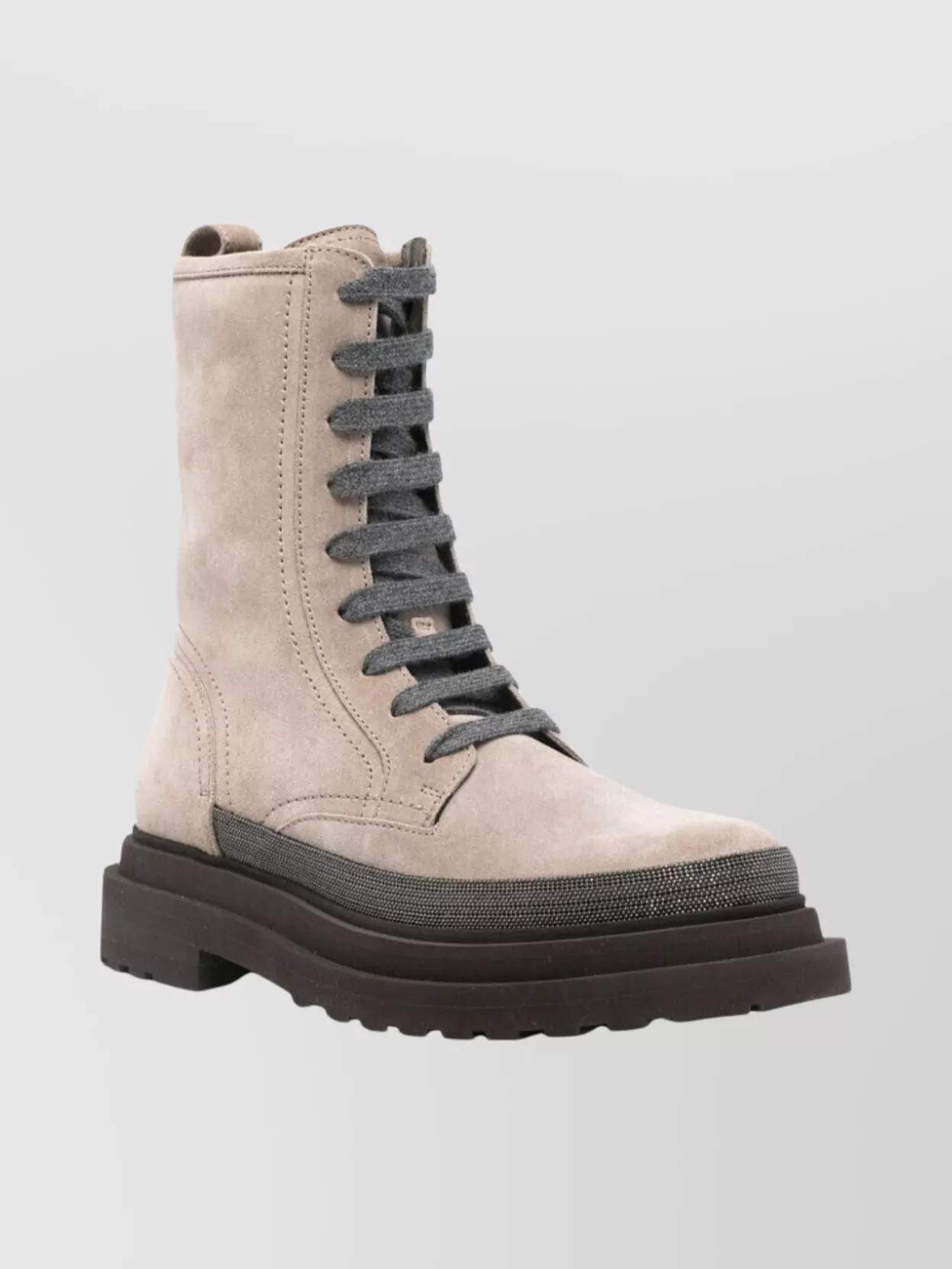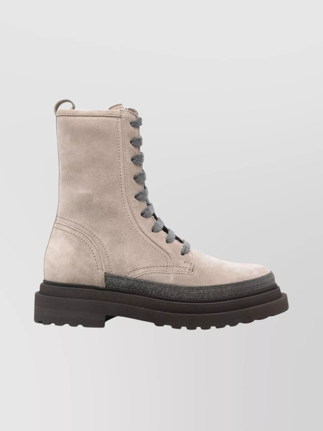 Brunello Cucinelli chunky sole suede ankle boots with monili detail