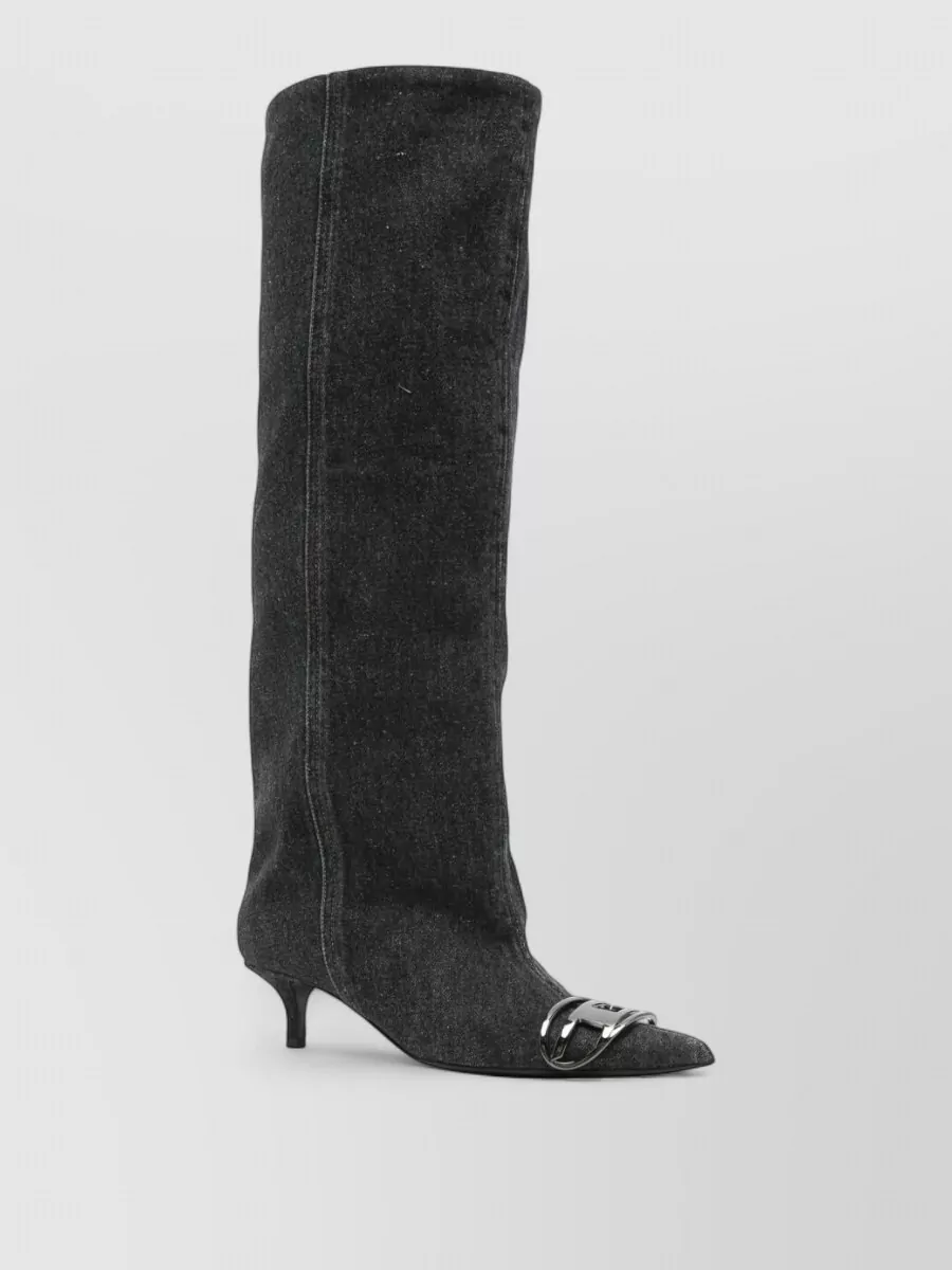 Diesel sculpted heel knee-high metallic pointed stiletto