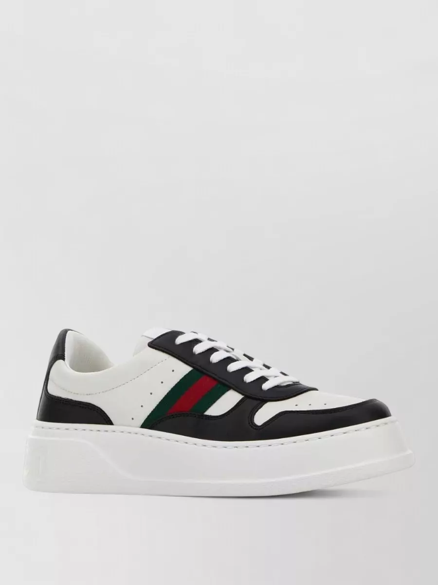 Gucci leather sneakers contrast panels low-top silhouette rubber sole