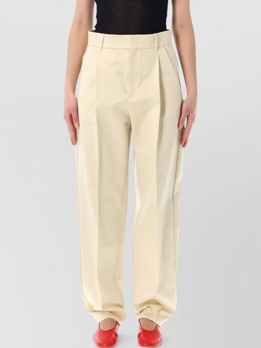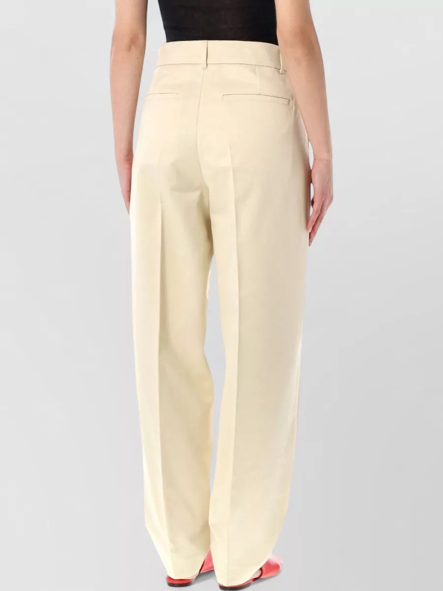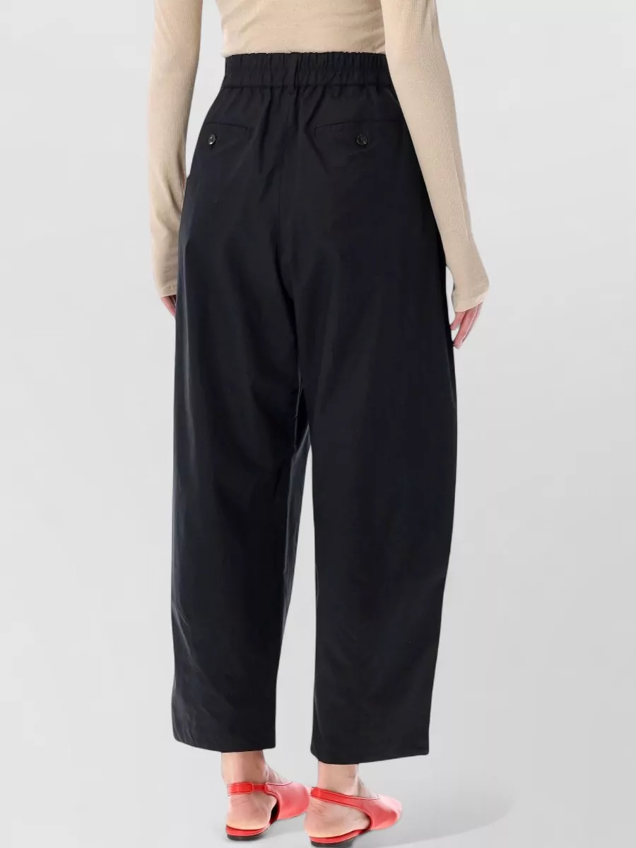 organic cotton mid-rise pleated wide-leg ankle-length trousers