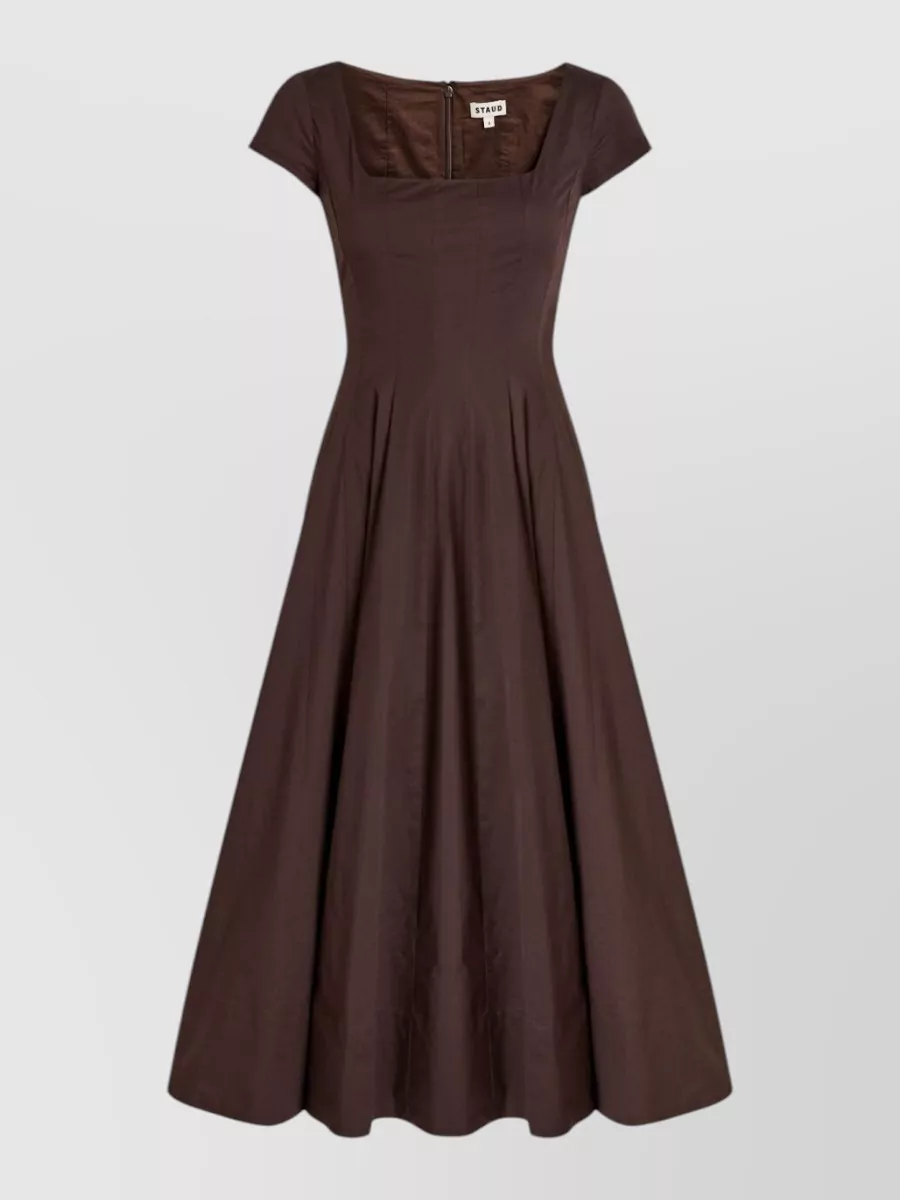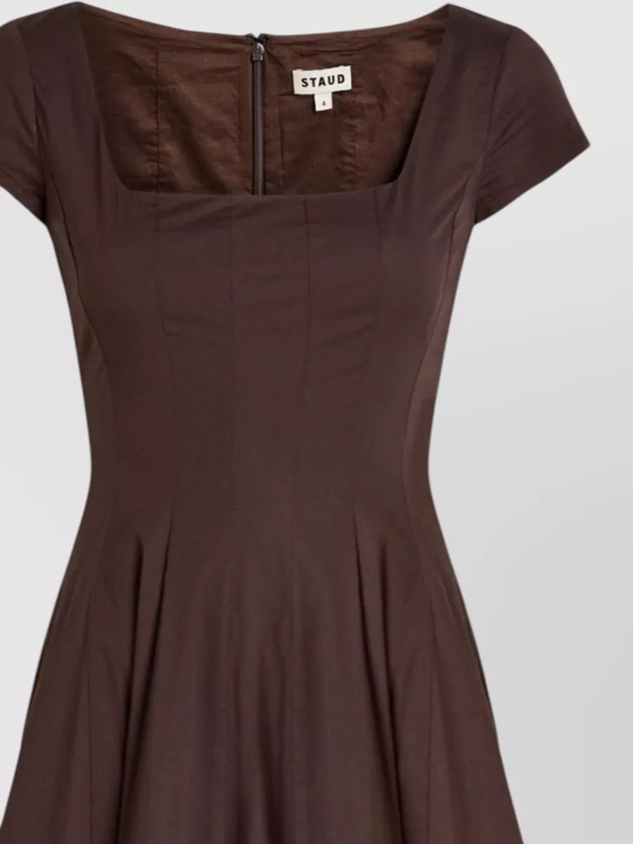 Staud square neckline cap sleeve knee dress