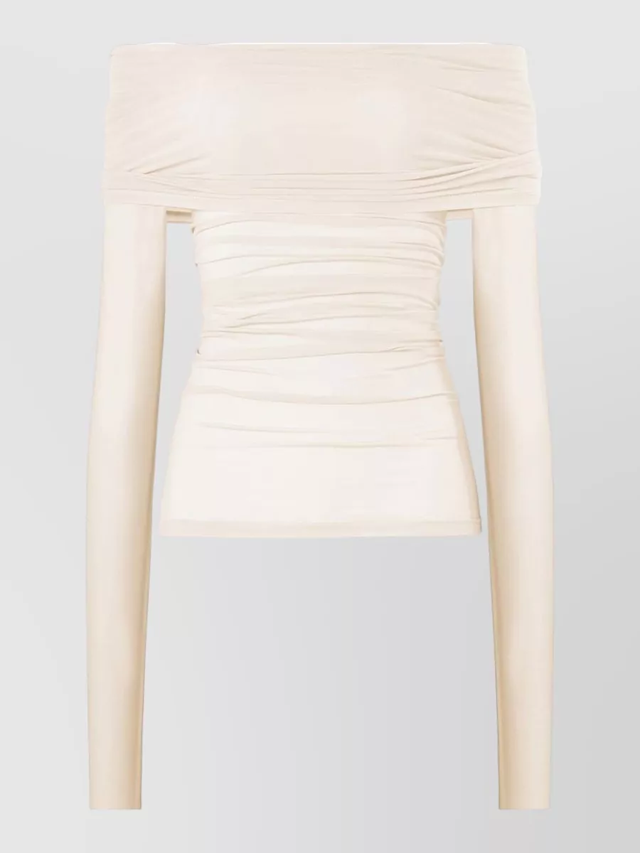 Wolford off shoulder ruched sheer knitwear top