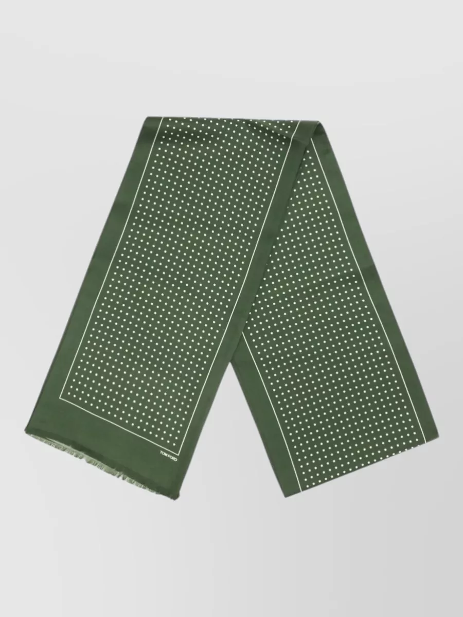 Tom Ford rectangular silk nylon polka dot scarf fringed