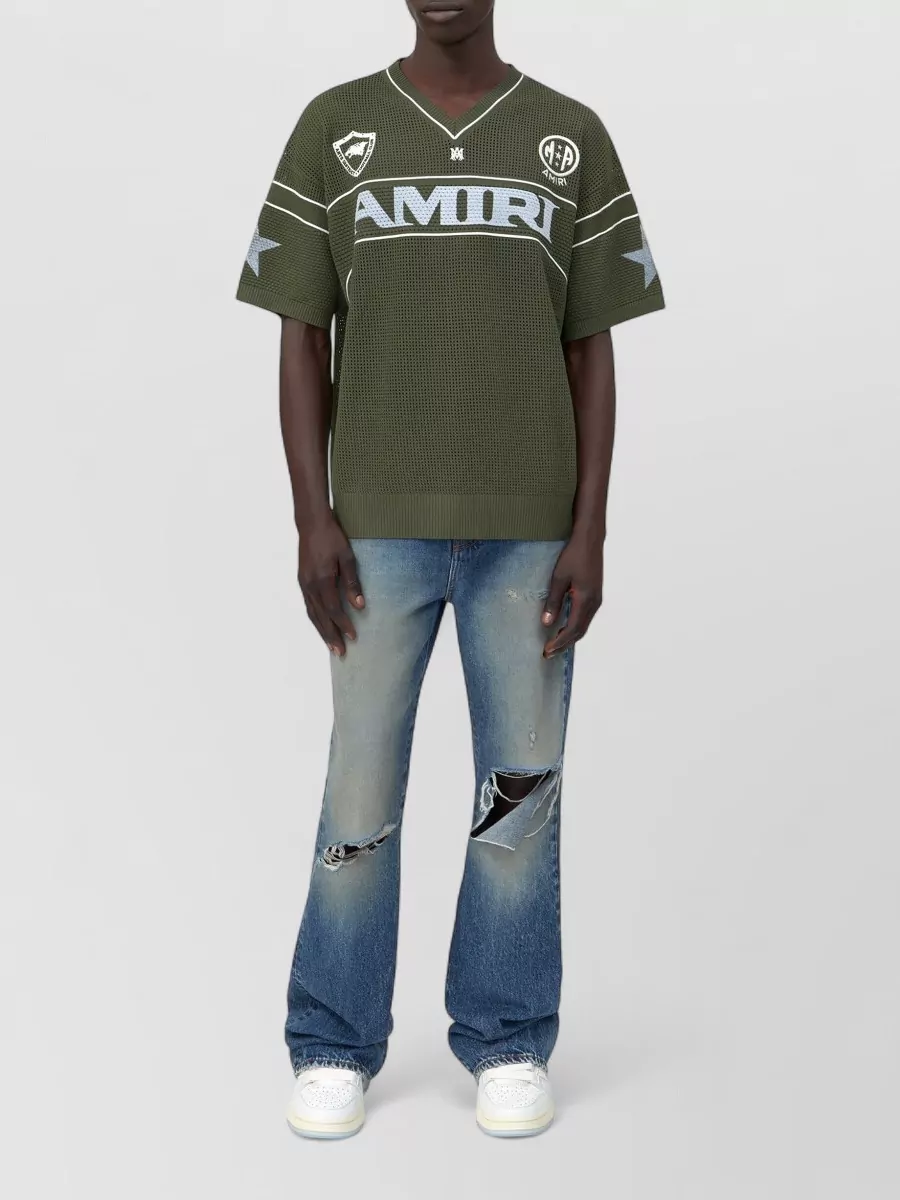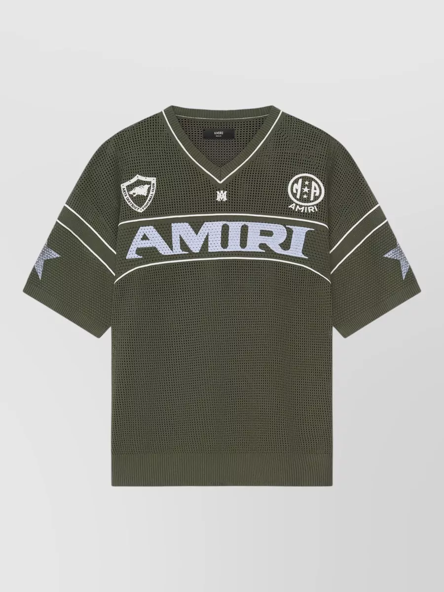 Amiri sport mesh t shirt ribbed hem v neck