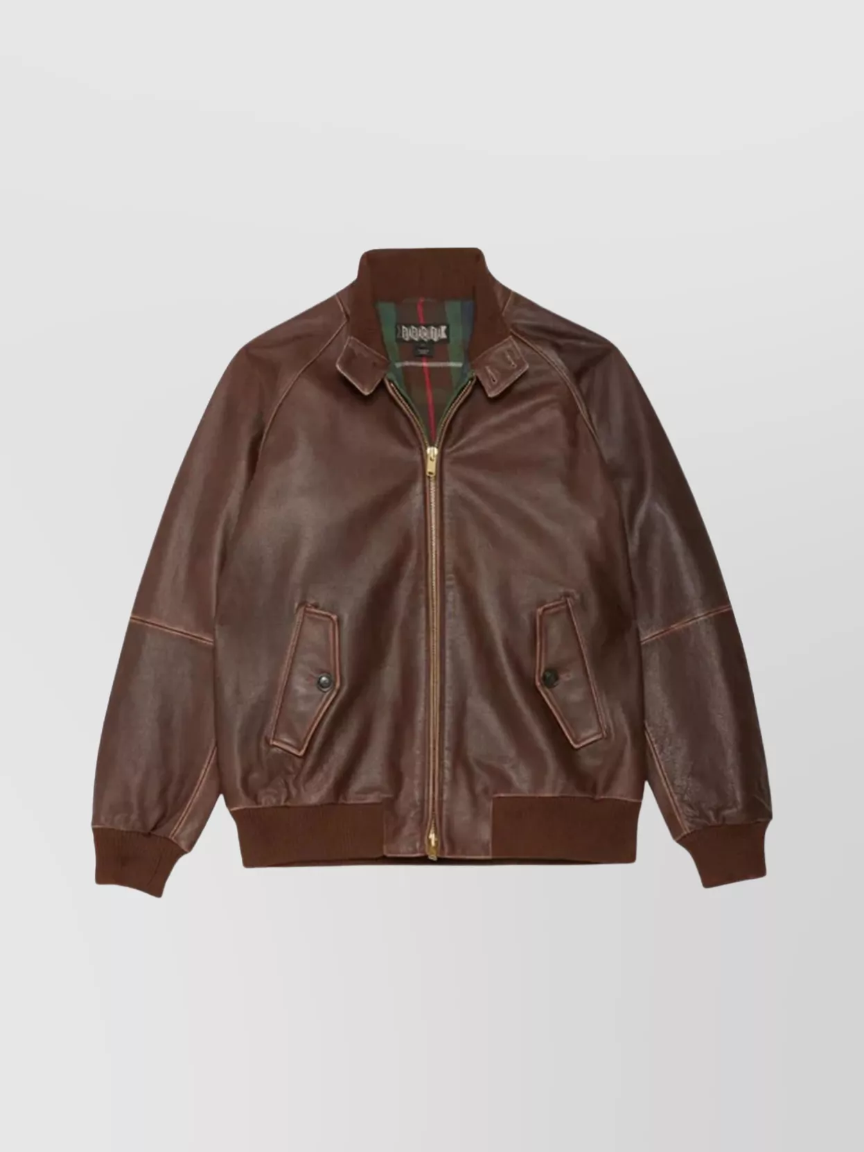 Baracuta collar buttoned jacket ribbed cuffs pockets