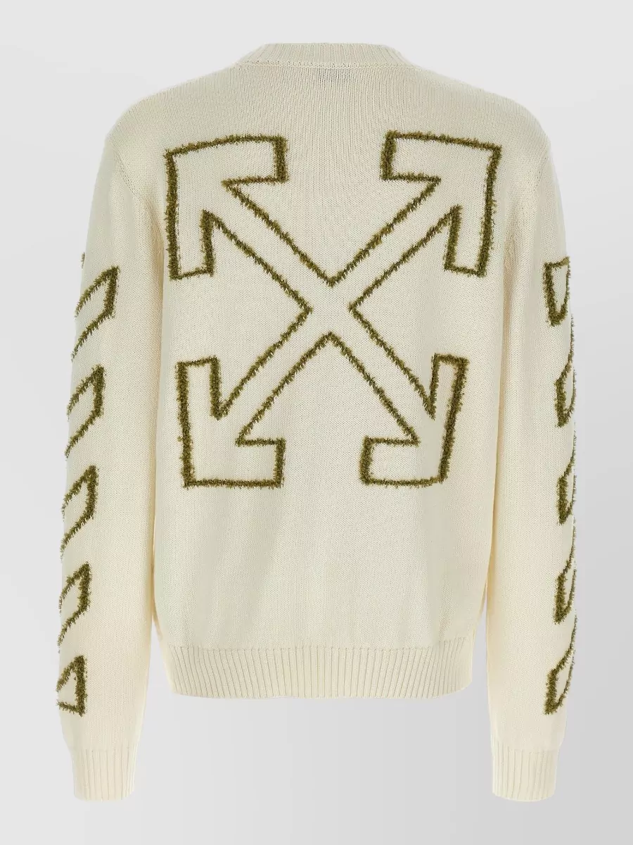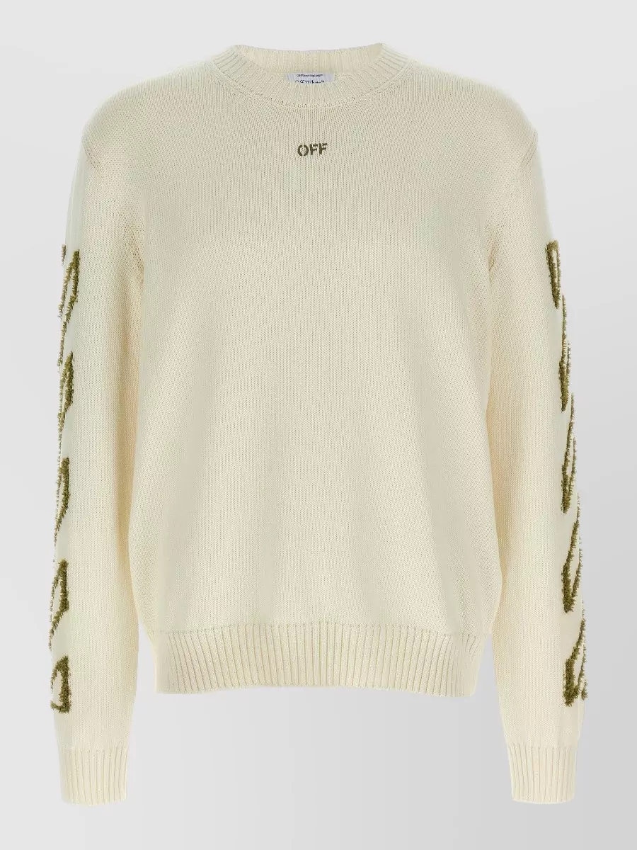 Off-White diagonal knit crew neck sweater ribbed