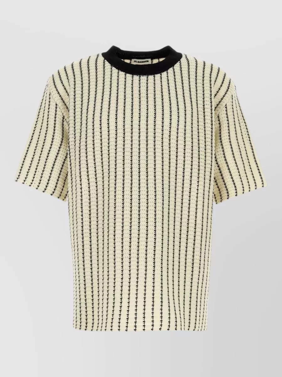 Crochet cotton t shirt crew neck striped