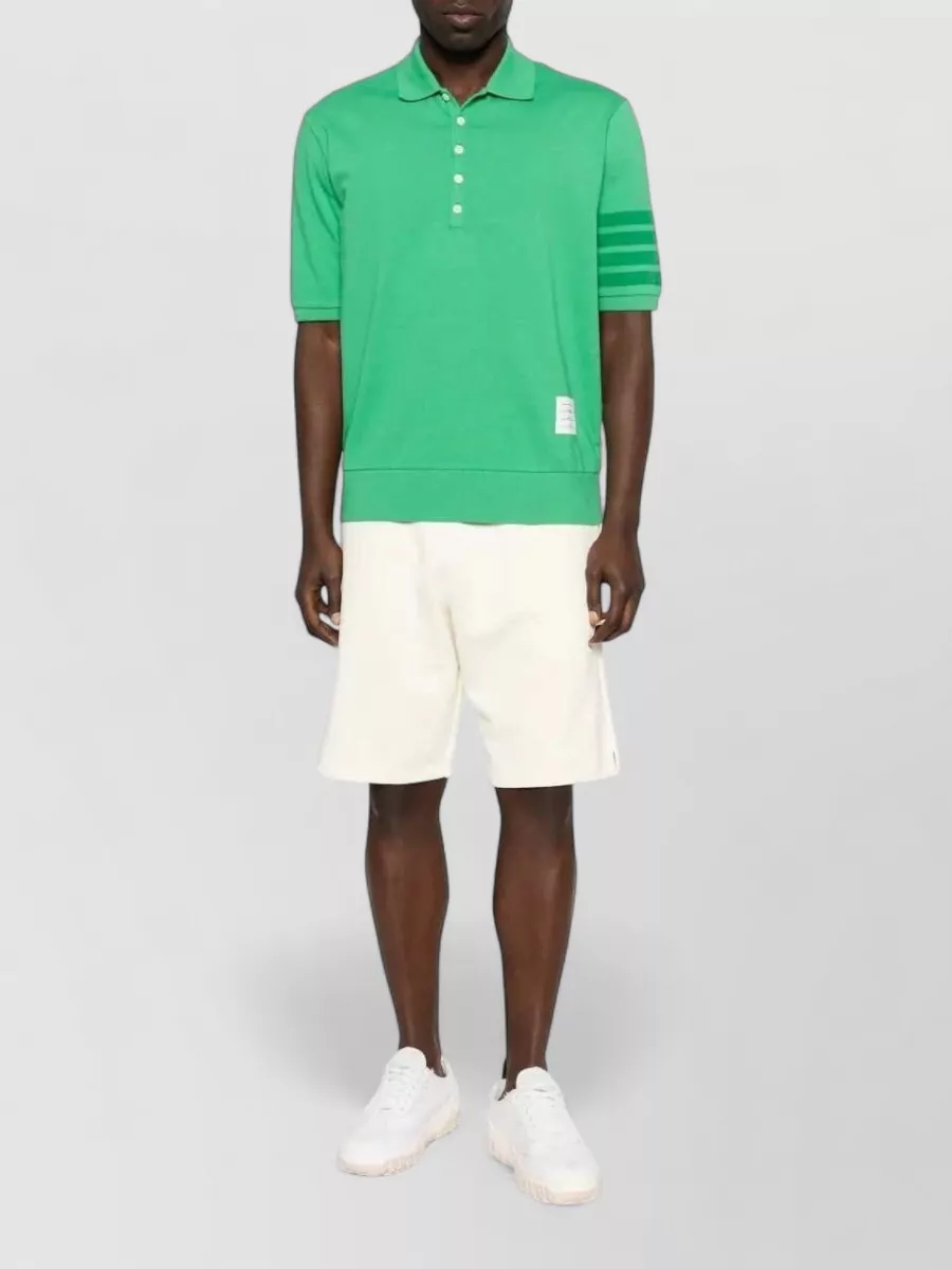 Thom Browne ribbed cuff short-sleeve polo shirt