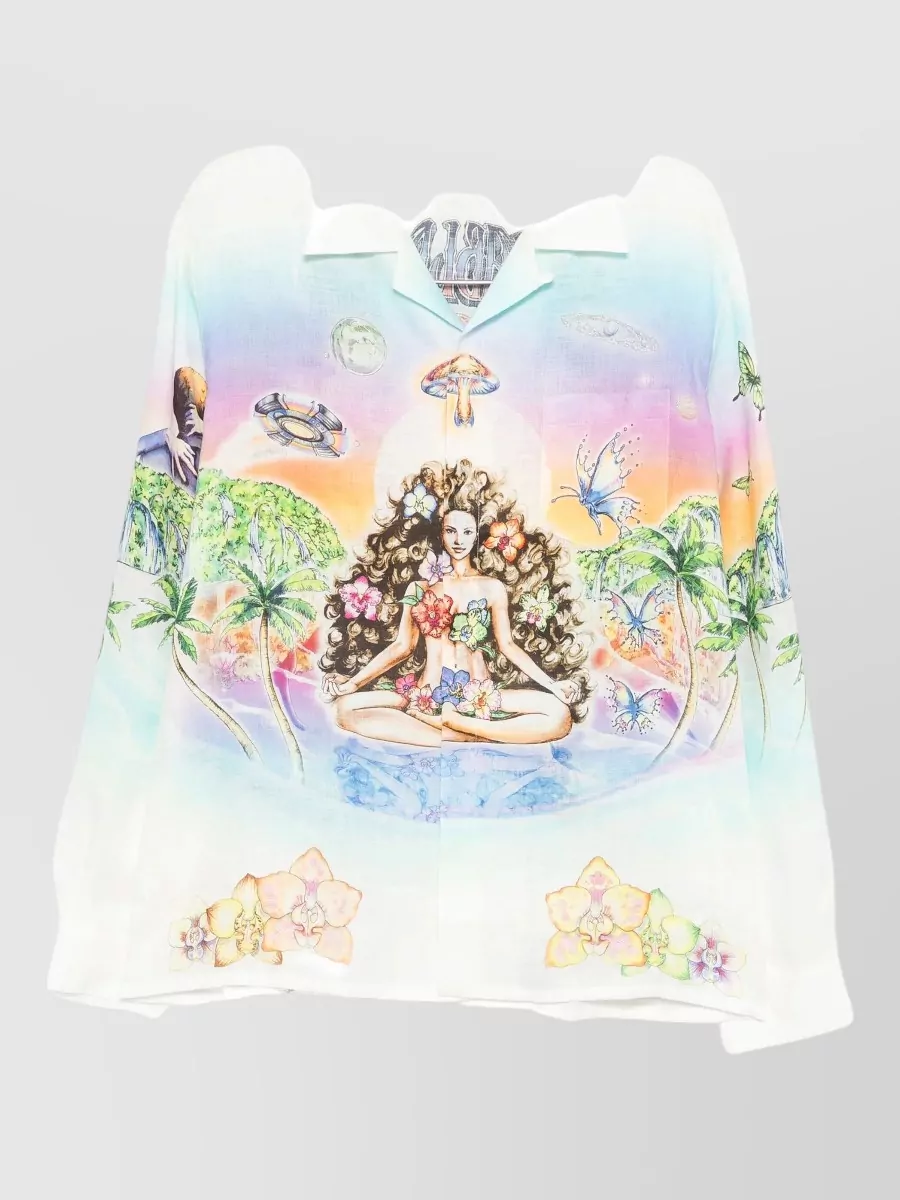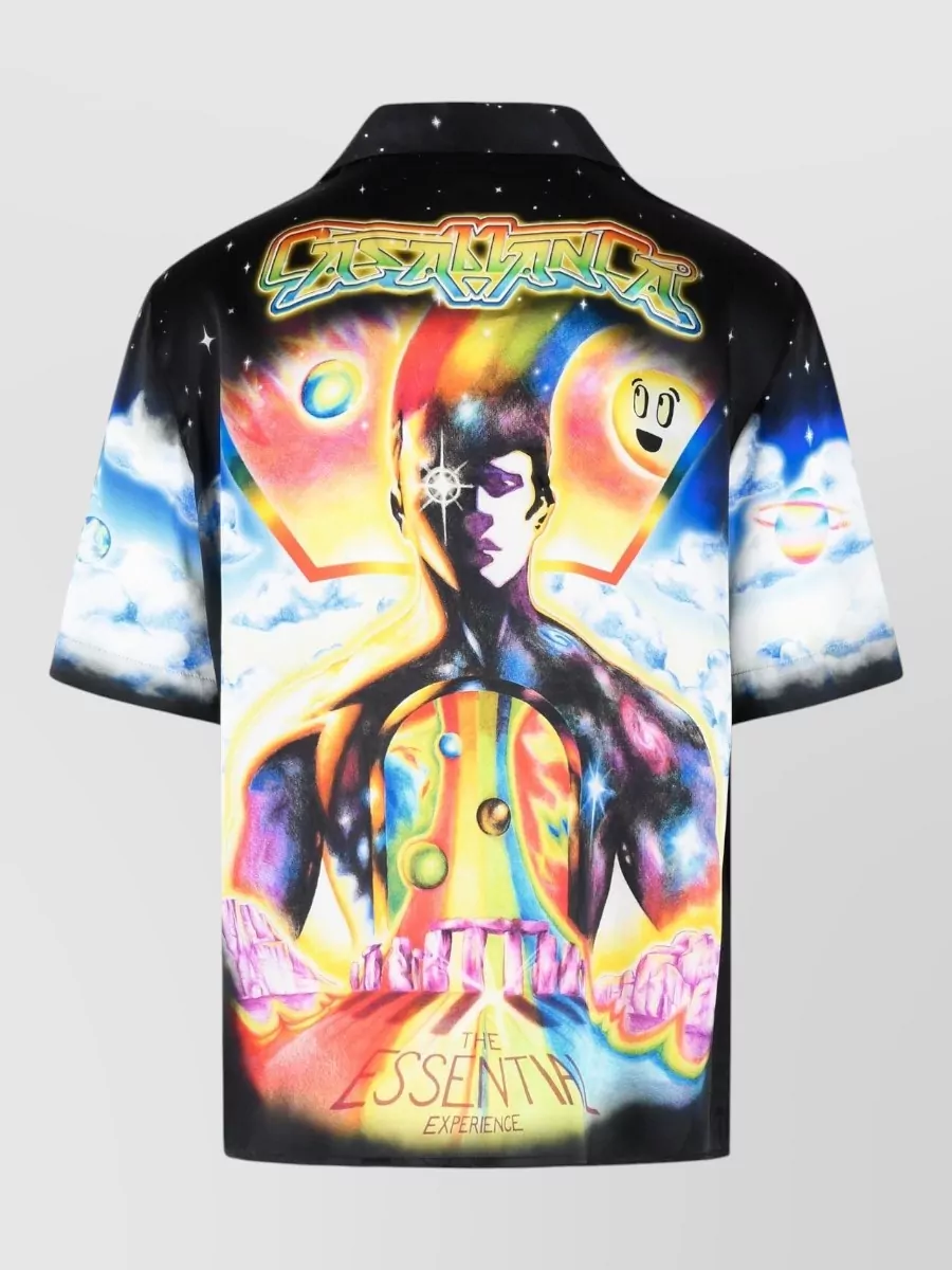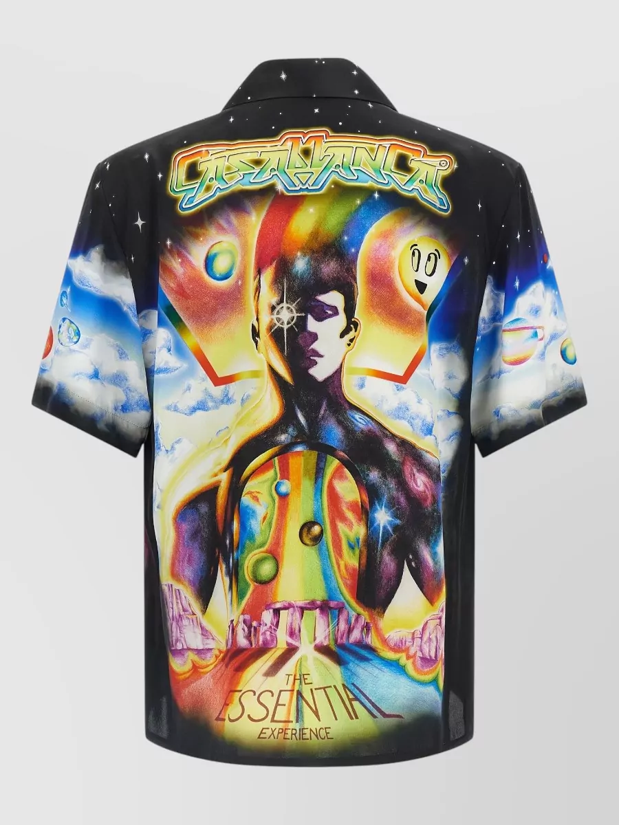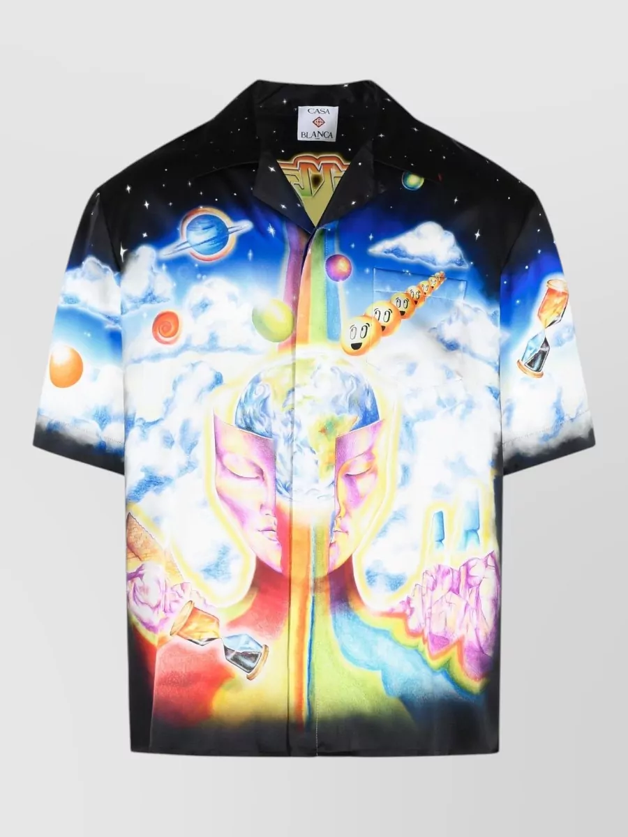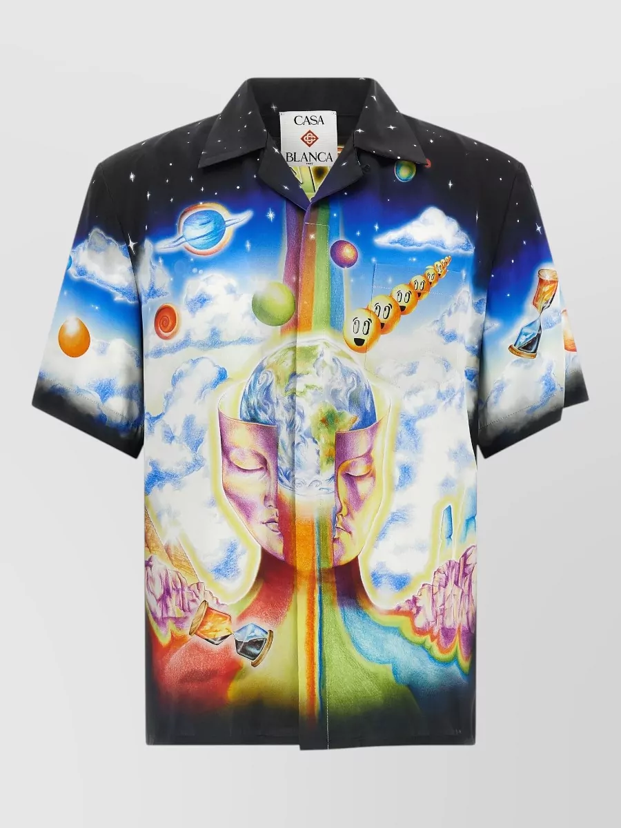 Casablanca silk graphic print cuban collar long sleeve shirt