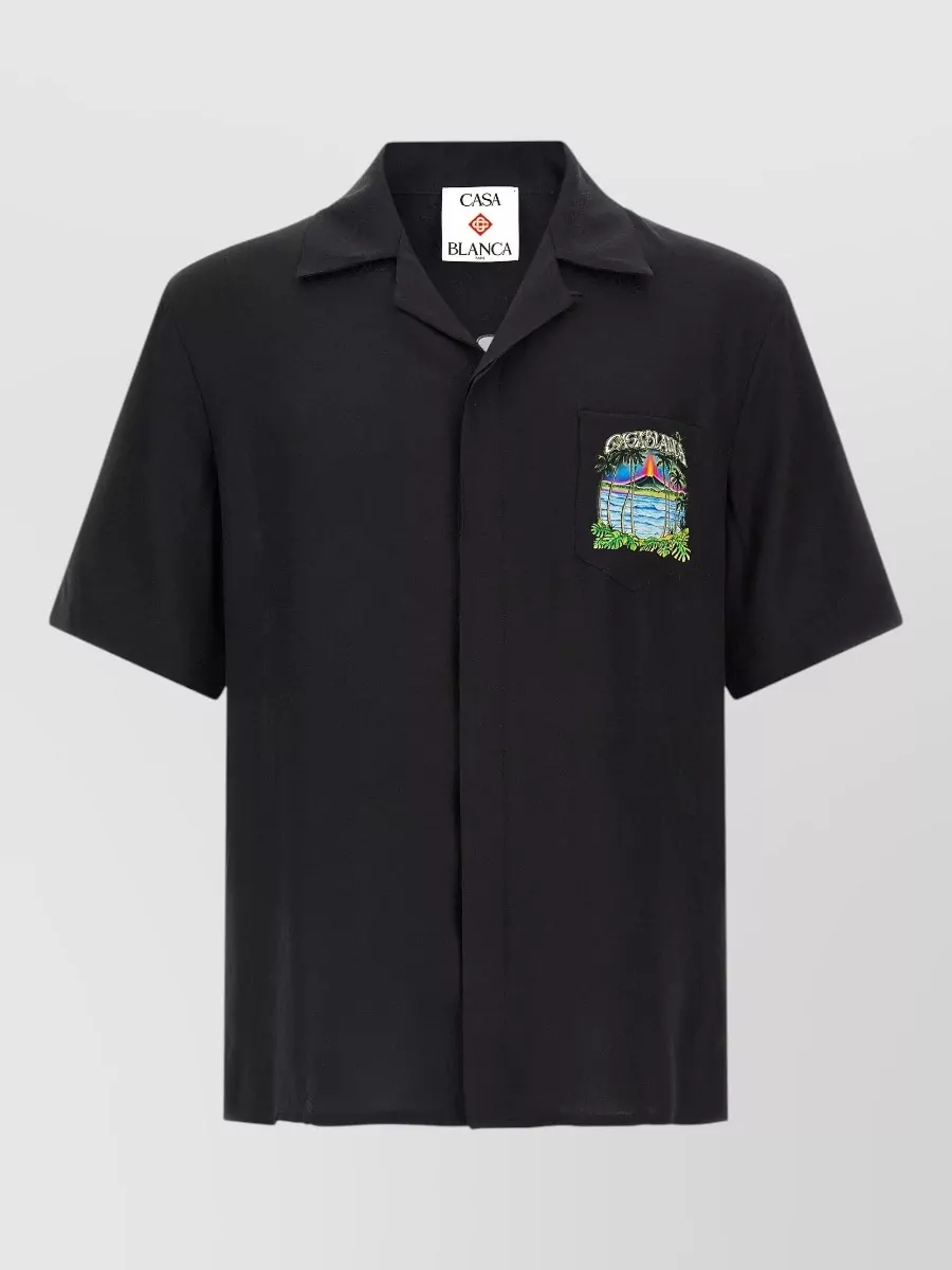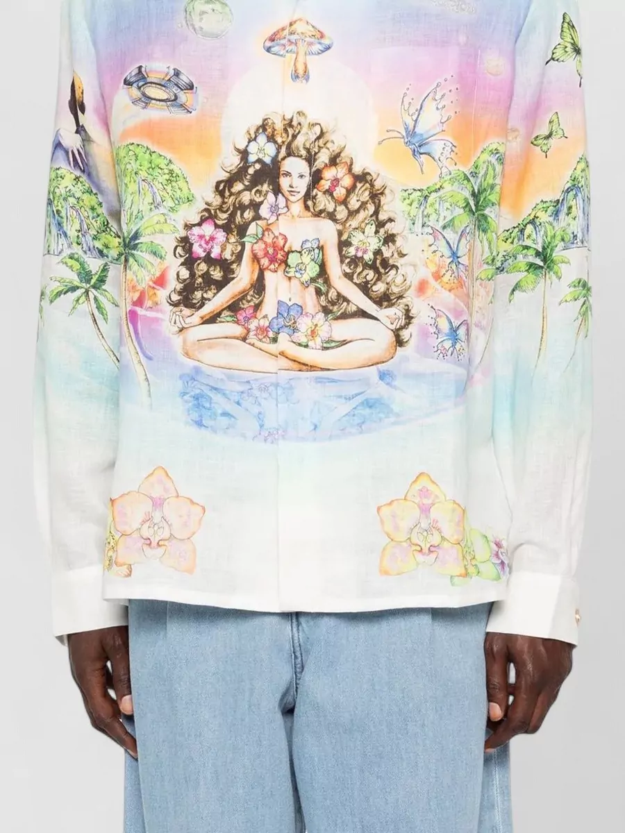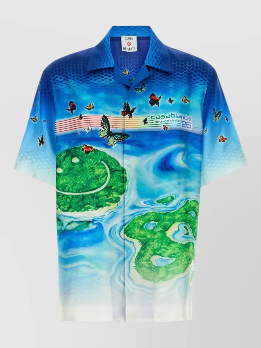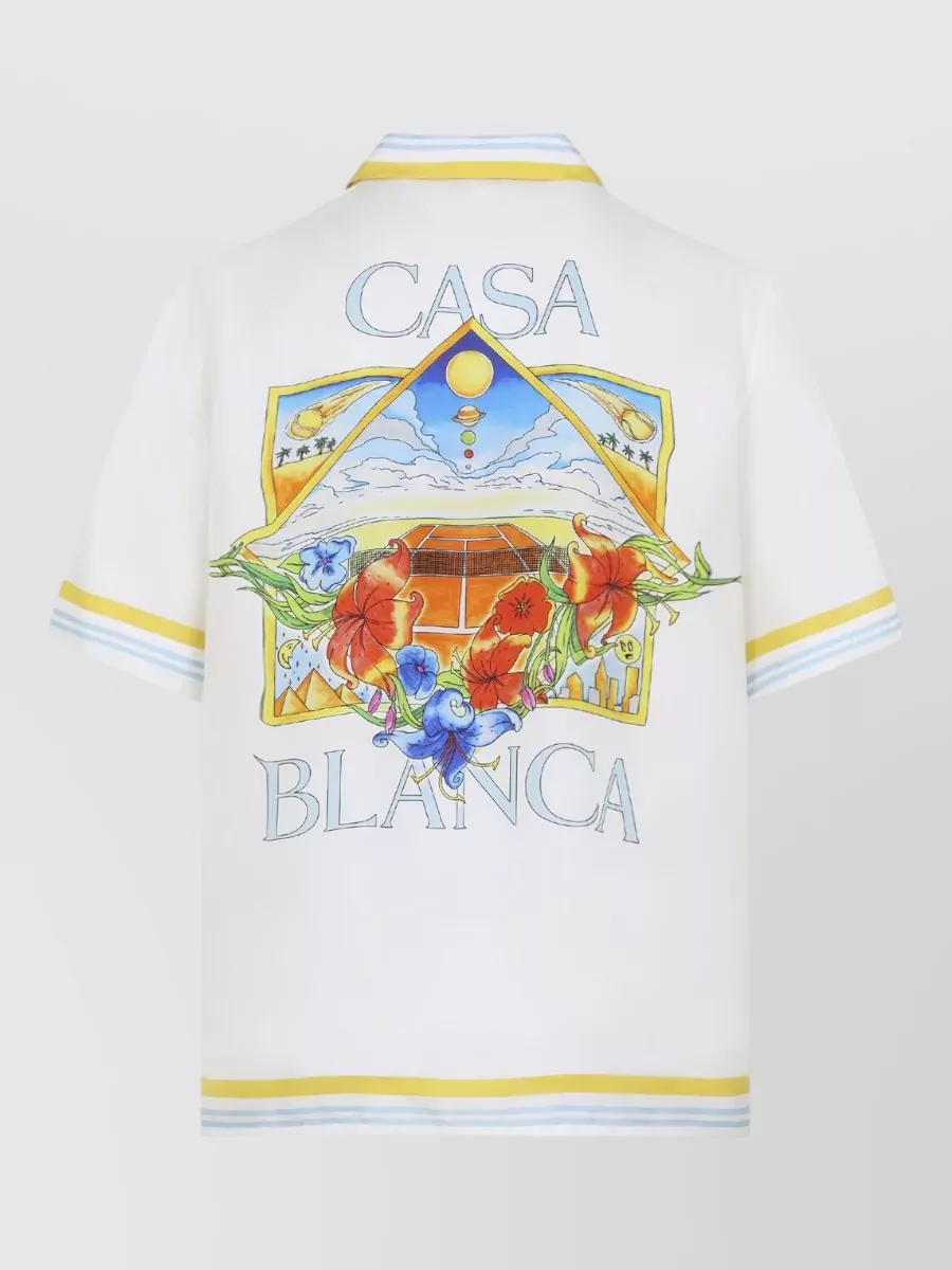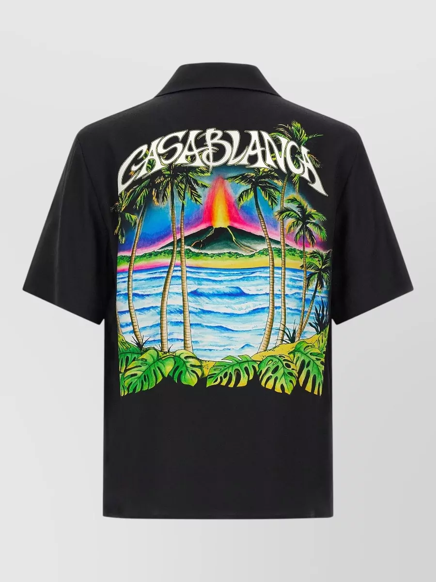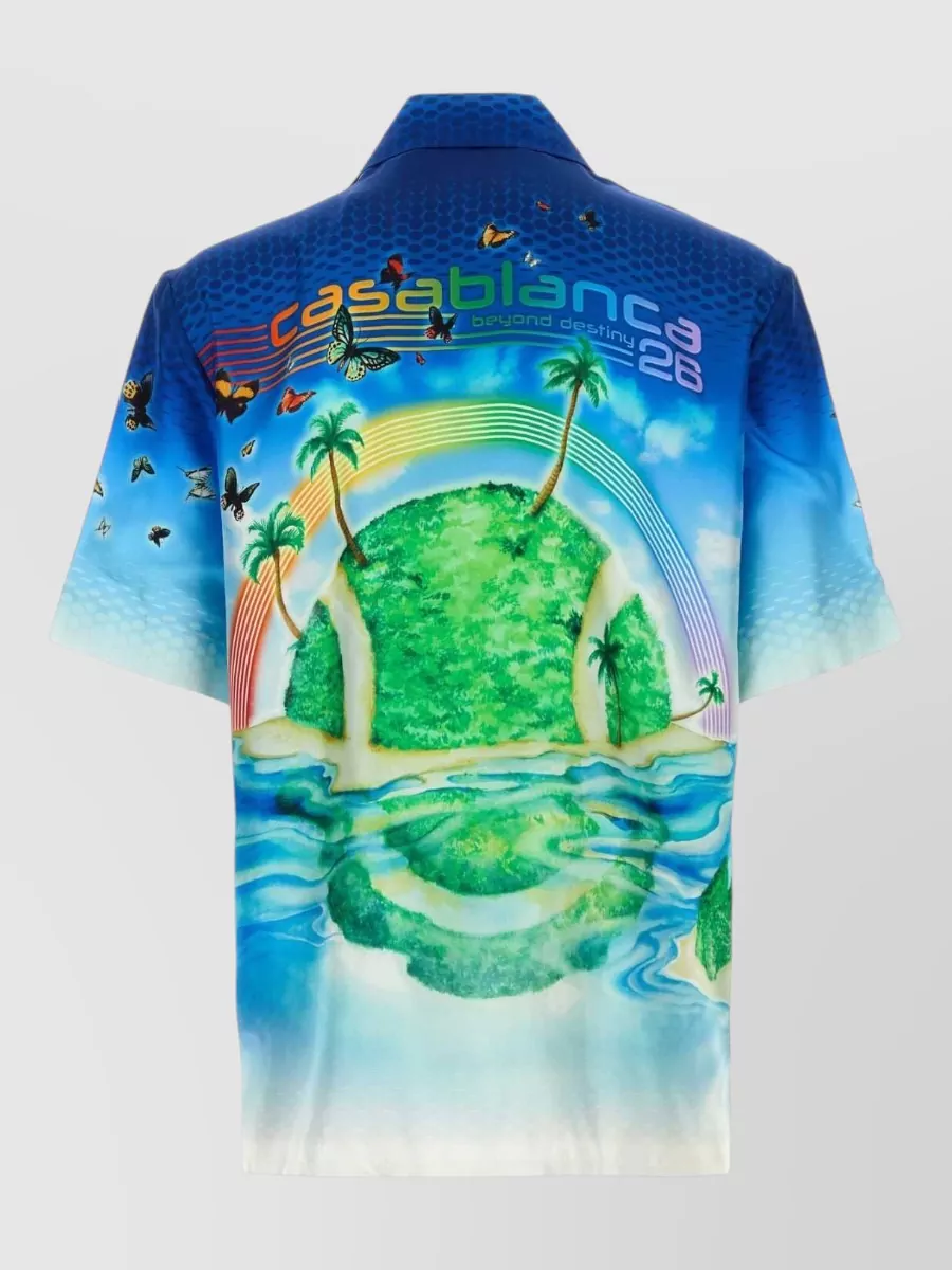 Casablanca silk graphic print cuban collar long sleeve shirt