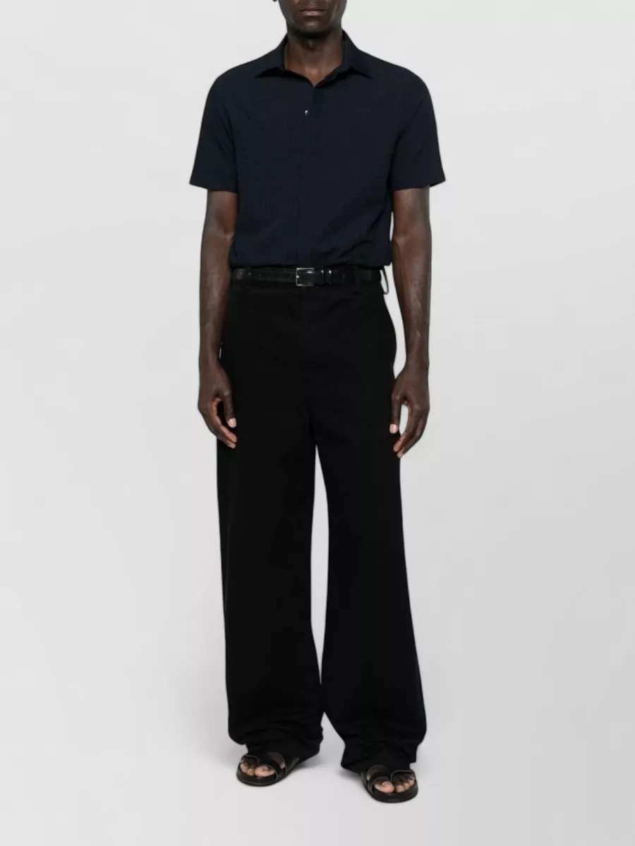 straight cut shirt short sleeves textured fabric