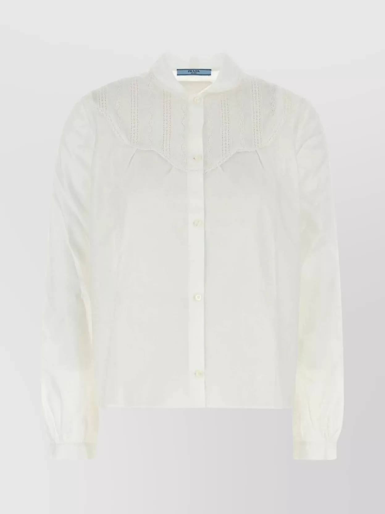 Prada cotton shirt with cuffed sleeves and embroidered detail