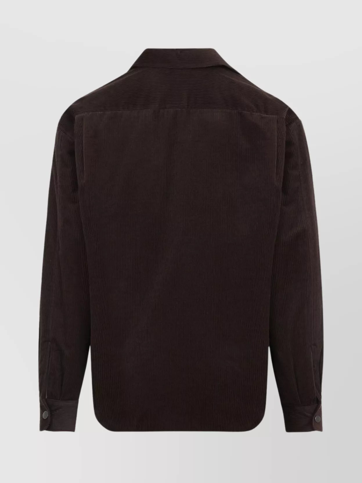 slits hemline loose fit long sleeves cotton poplin buttoned cuffs metal thread trimmings rear yoke pointed collar