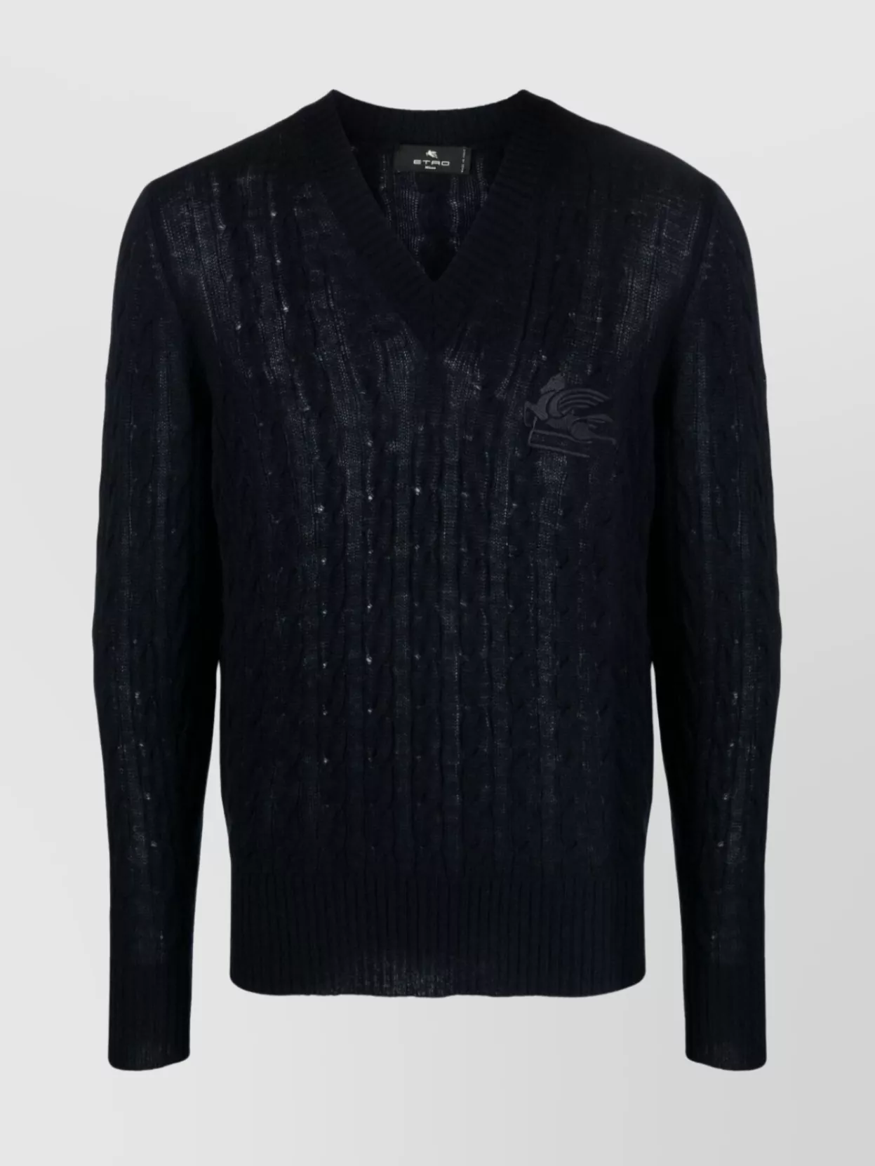 Etro v-neck cable knit sweater with ribbed cuffs and hem