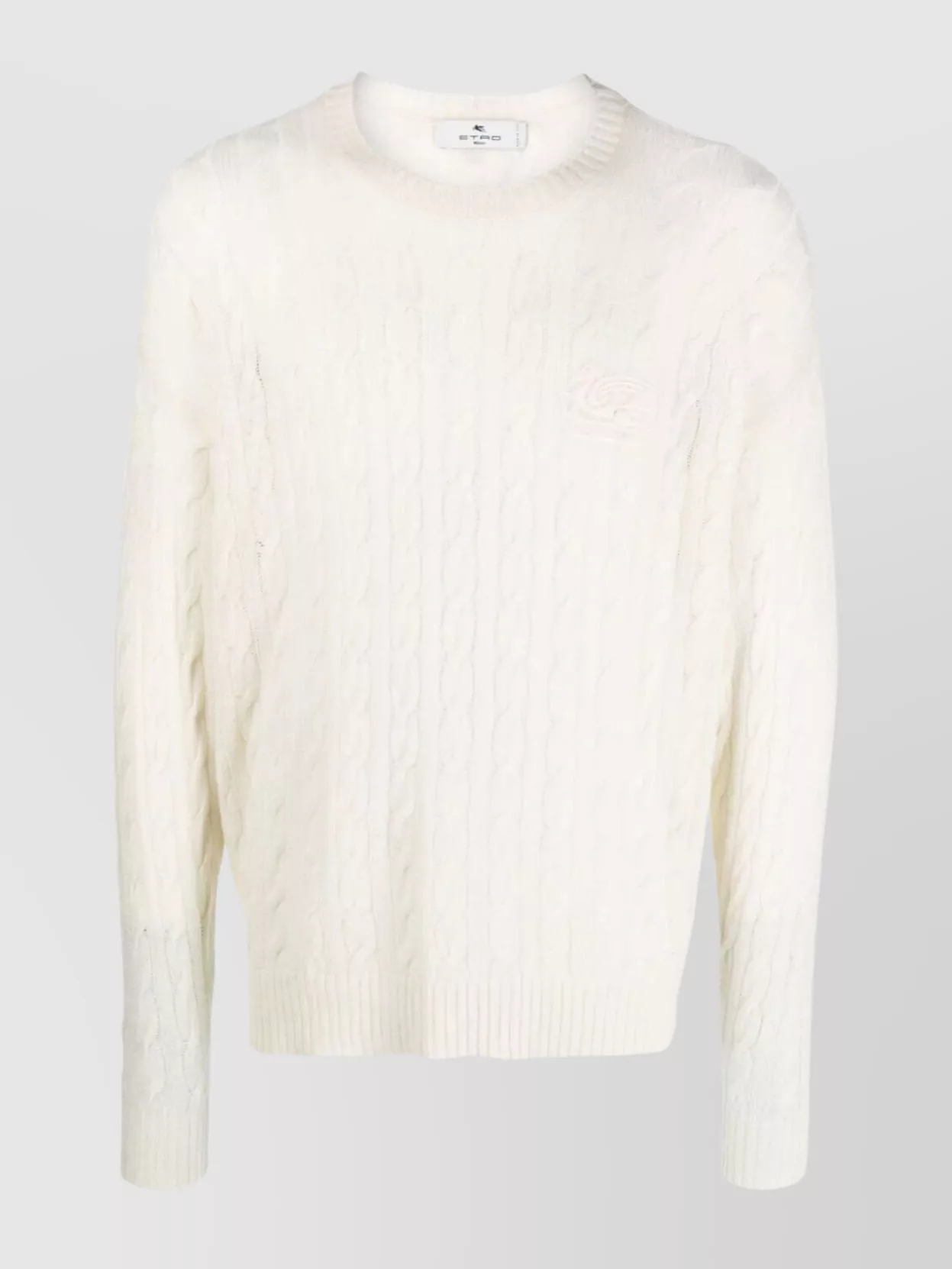 Etro cable knit turtleneck sweater with ribbed cuffs and hem