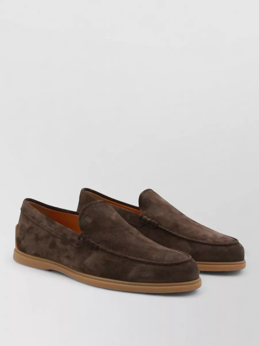 Suede loafers with rubber sole and round toe