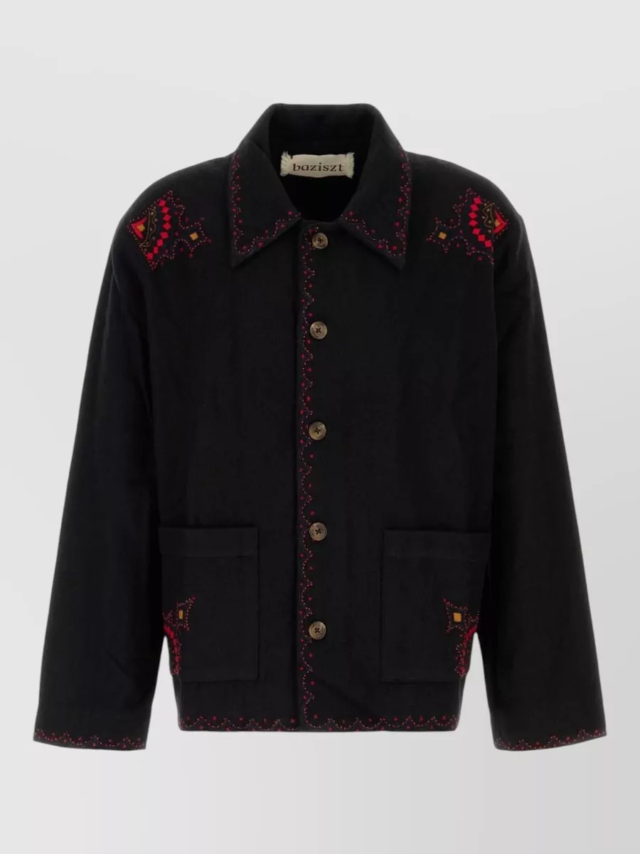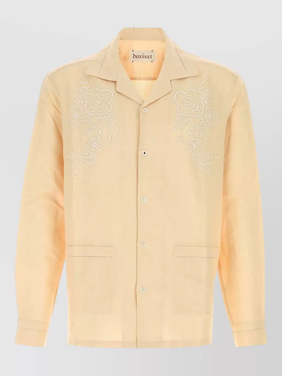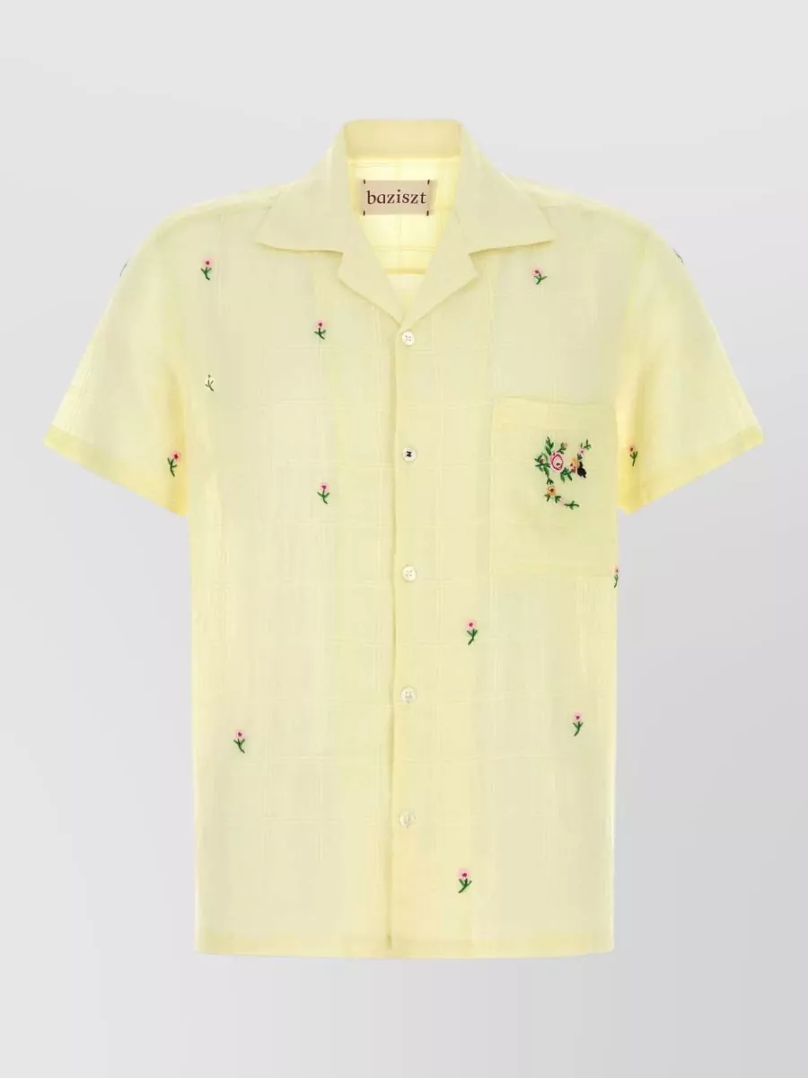 Baziszt Cotton shirt short sleeves camp collar embroidery