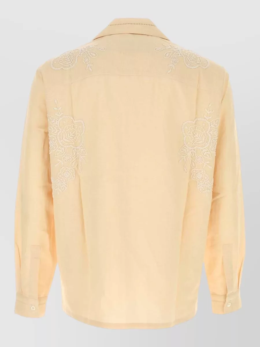 Cotton shirt short sleeves camp collar embroidery