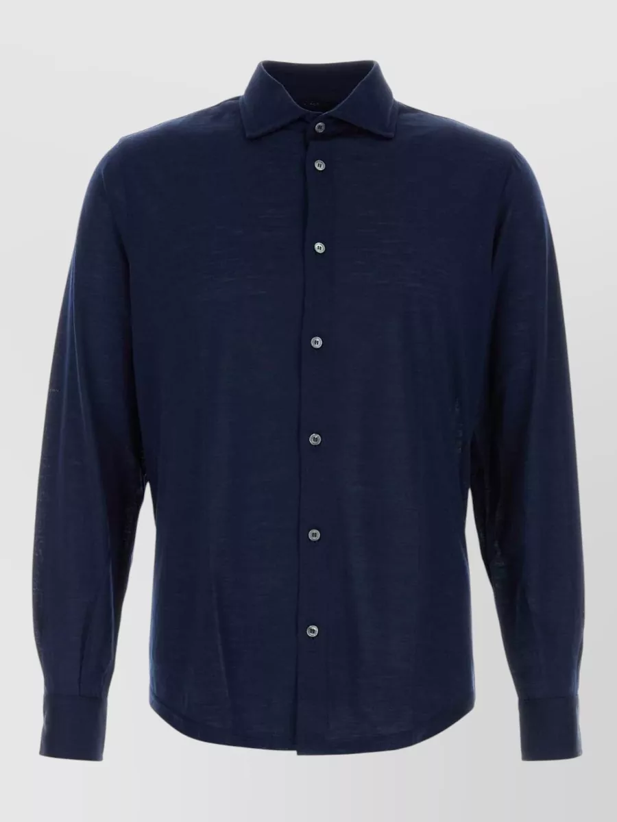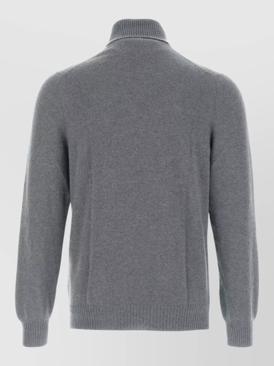 Fedeli Stretch wool blend crew sweater ribbed cuffs hem