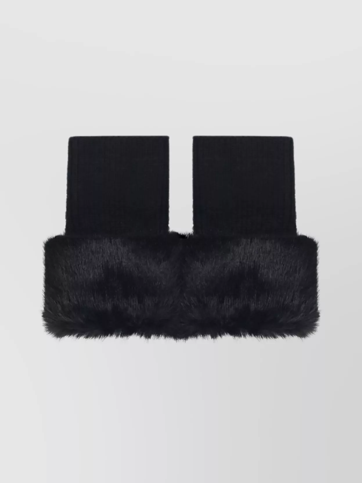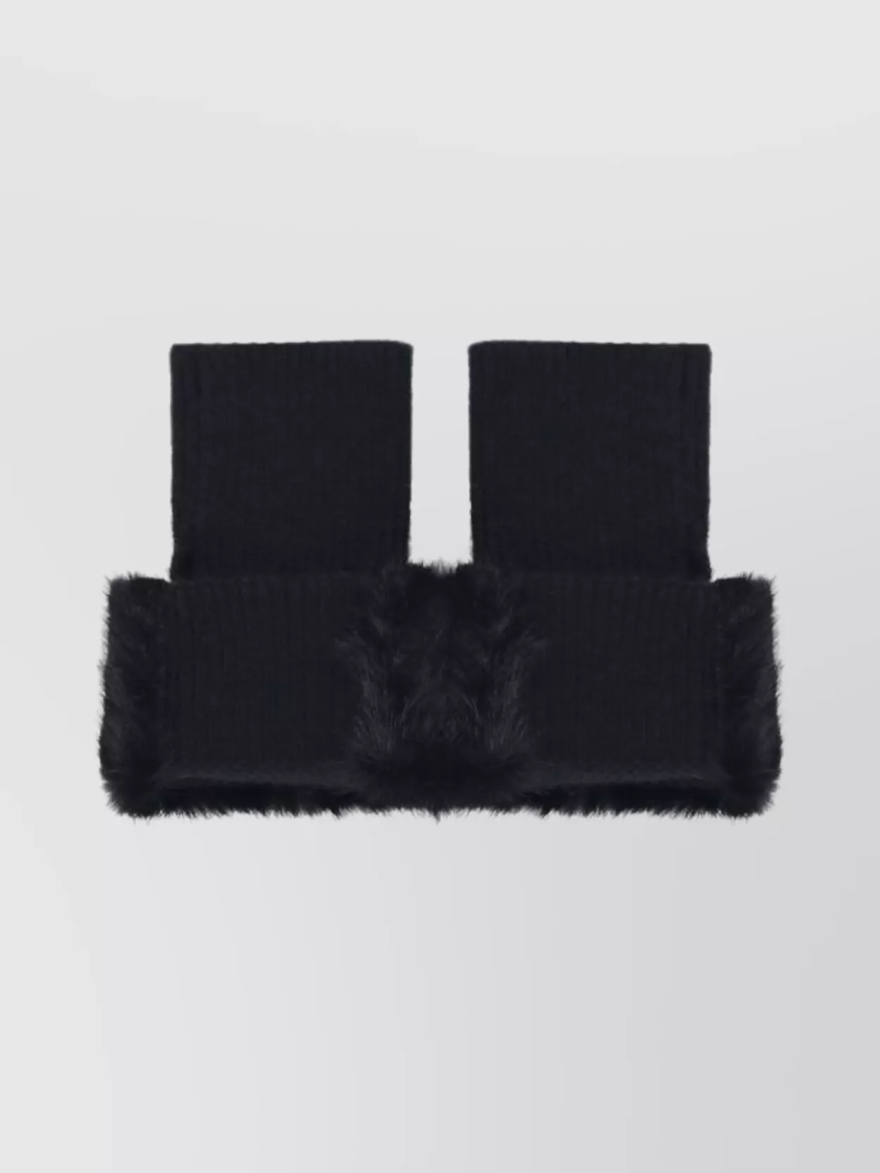 Coccinelle ribbed fingerless gloves with eco fur detail