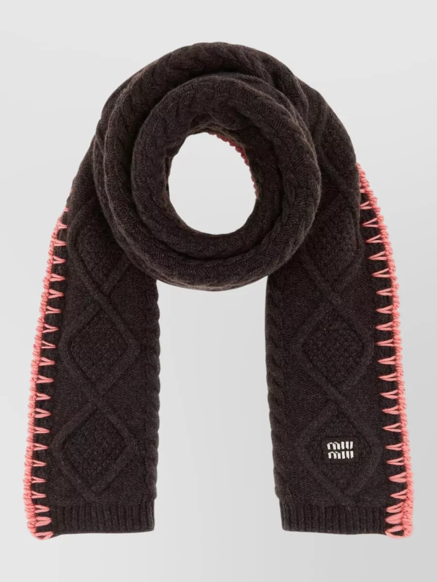 Wool blend scarf cable knit contrast trim