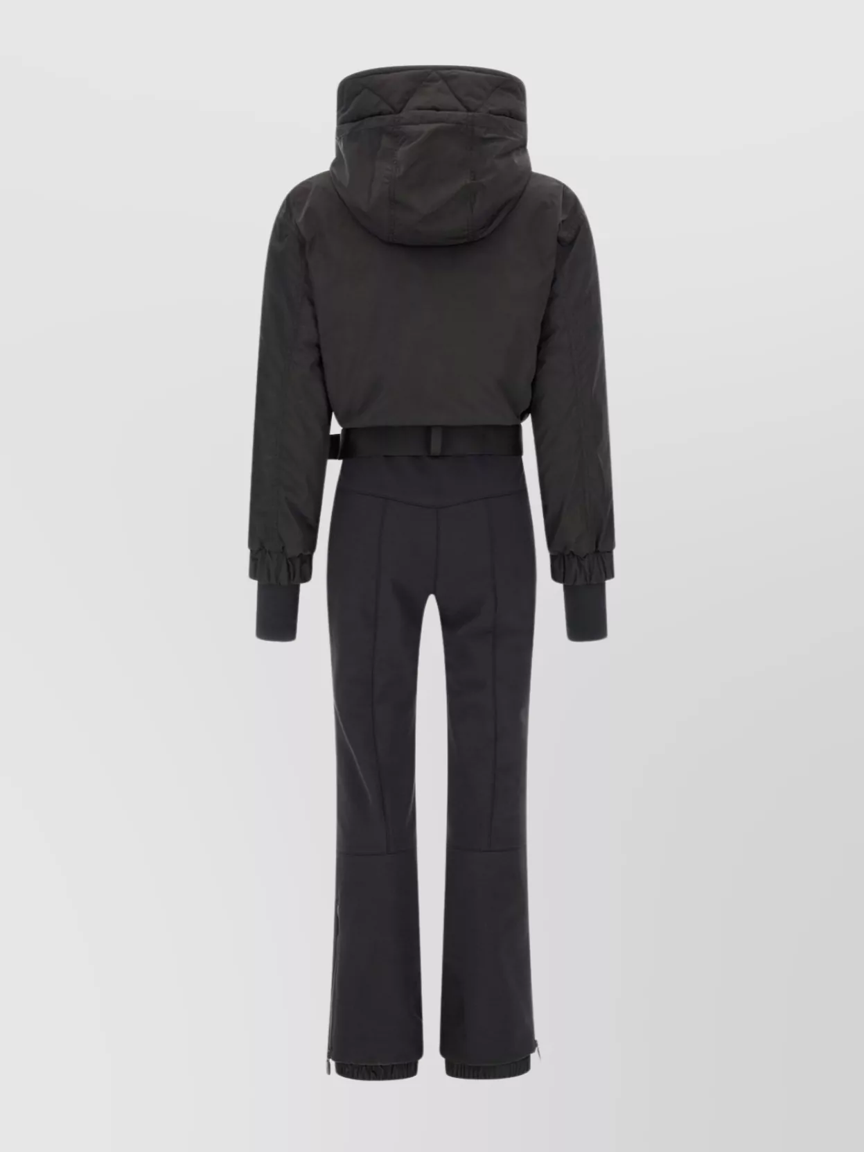 ski suit with belted waist and hood