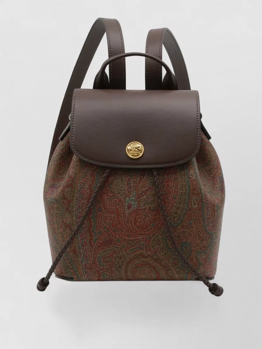Longchamp leather trim top handle adjustable shoulder straps backpack
