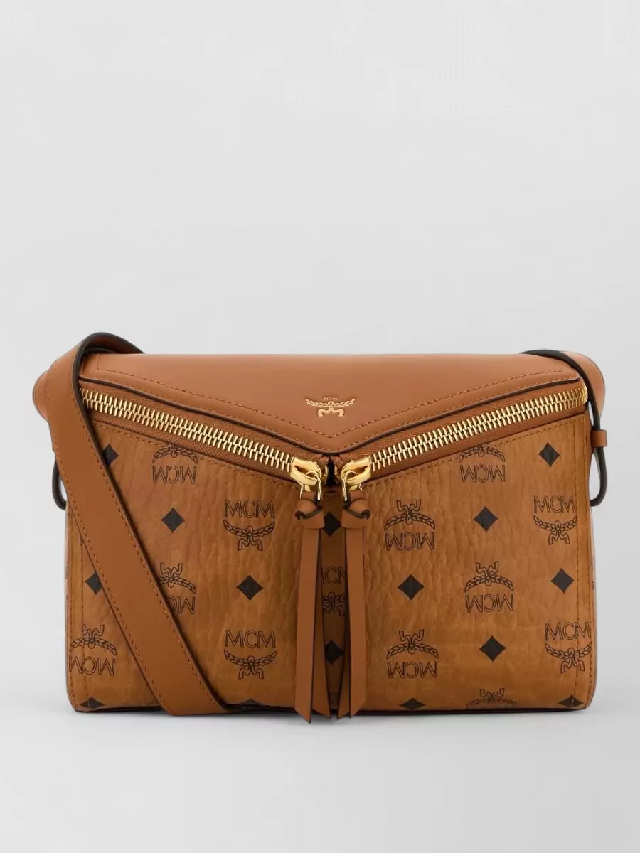 Mcm crossbody bag with adjustable strap and front pocket