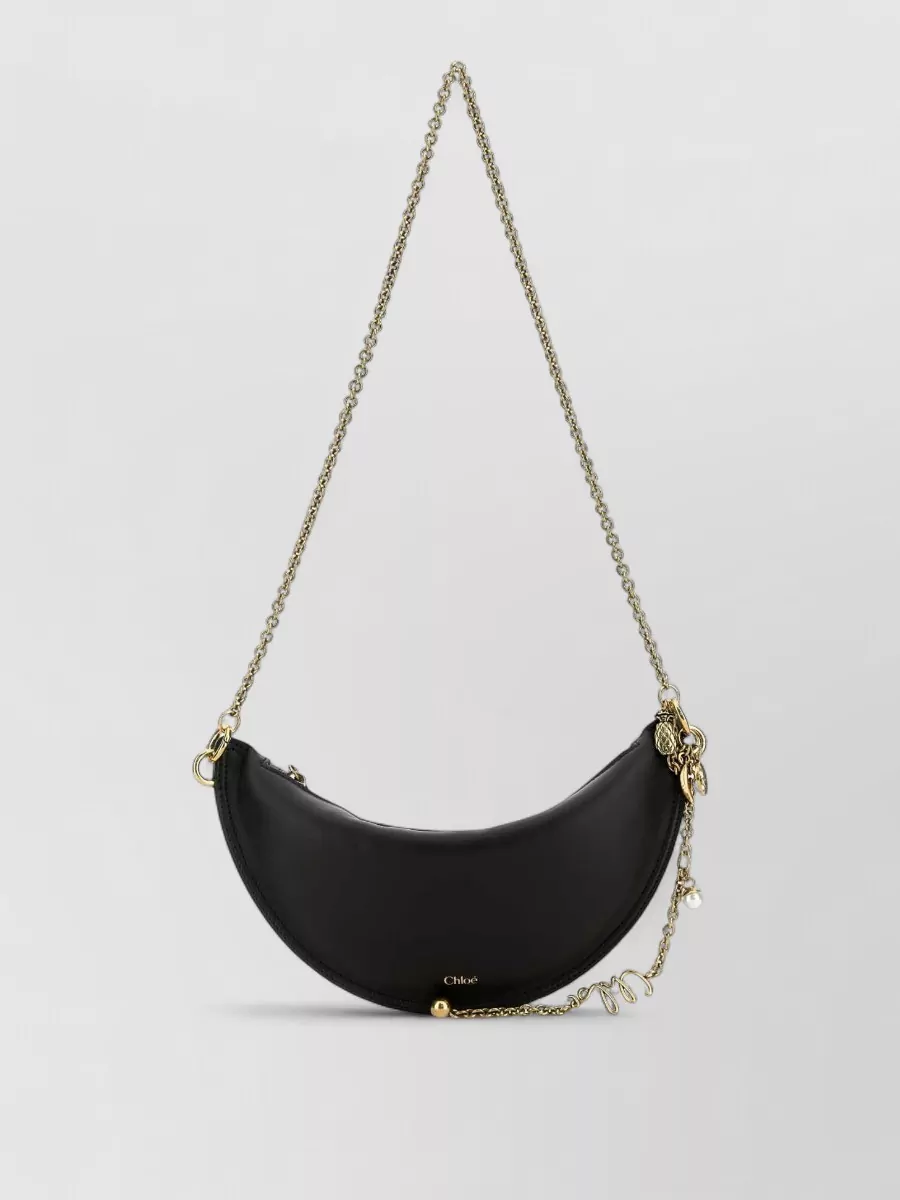 Leather mini halfmoon shoulder bag charm chain