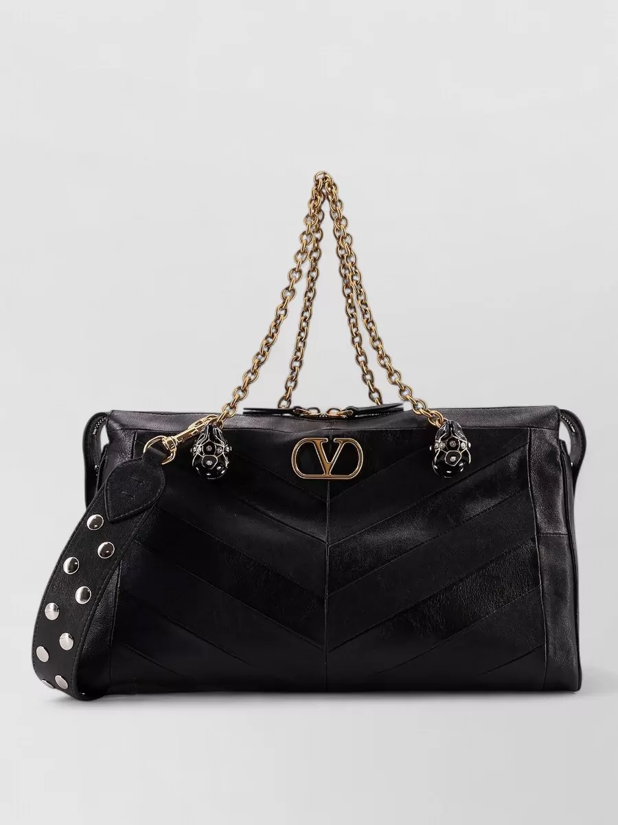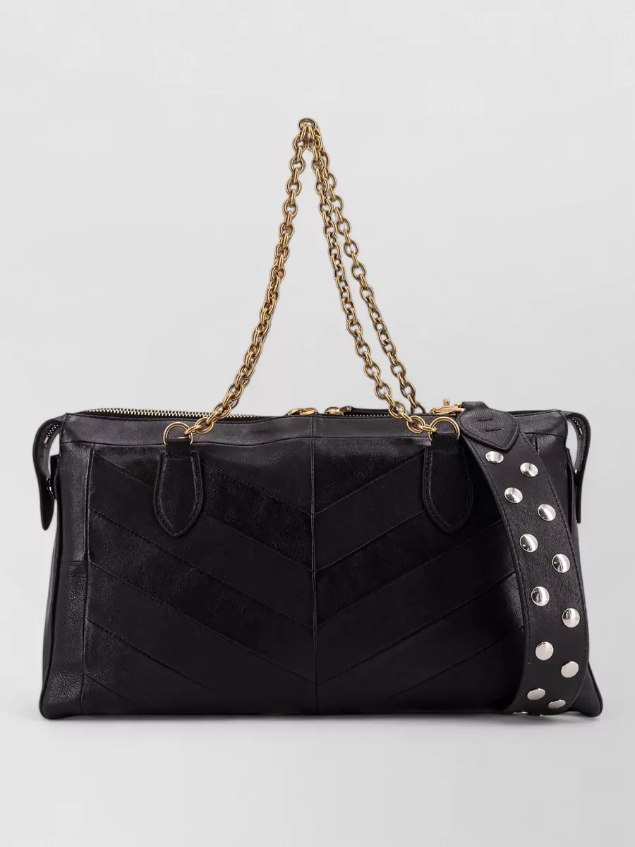 small leather shoulder bag with adjustable chain-link strap