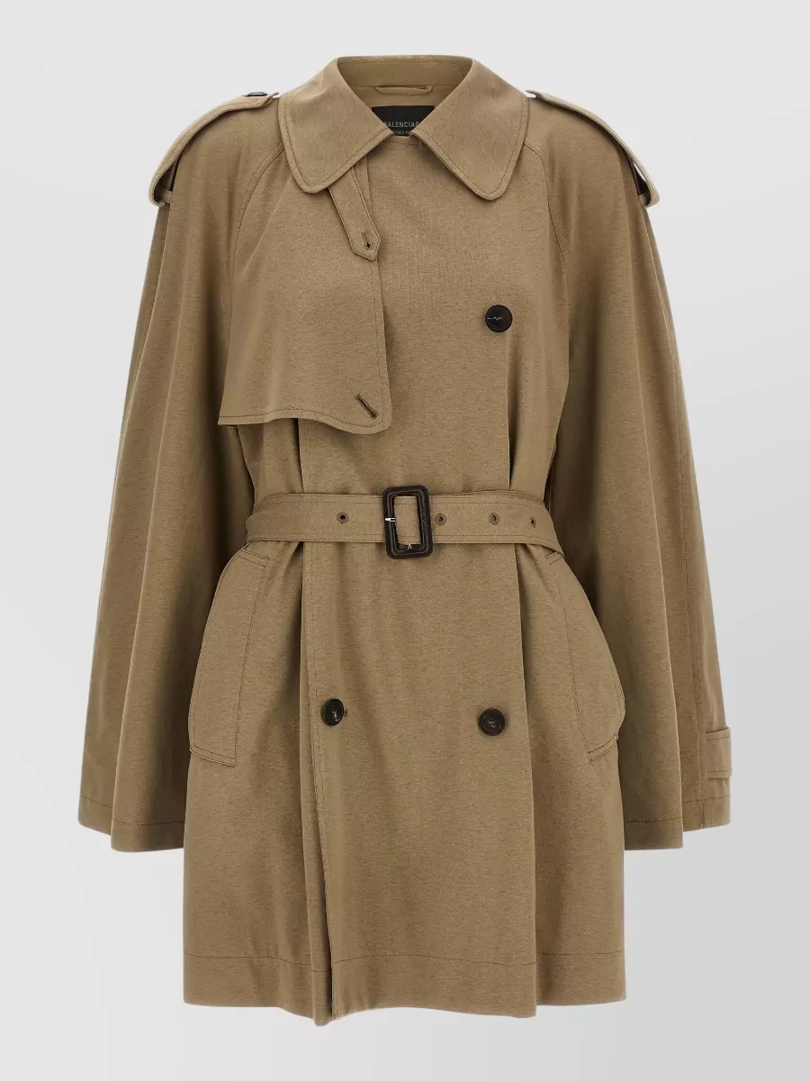 Balenciaga cotton trench coat belted waist epaulettes
