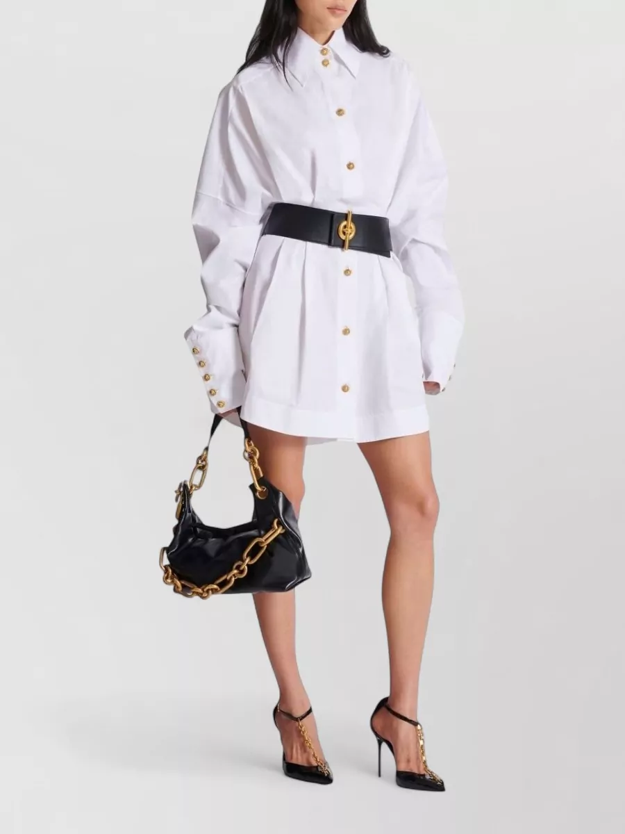 Balmain, renowned for its Parisian heritage and Renaissance flair, symbolizes couture allure. Rooted in Pierre Balmain's vision and epitomizing couture's golden age, today's designs under Olivier Rousteing are empowering and inclusive. Highlighting tailored blazers and dresses, the brand stands for sophistication. Complement your look with B-Bold sneakers and B-Army bags. Read more