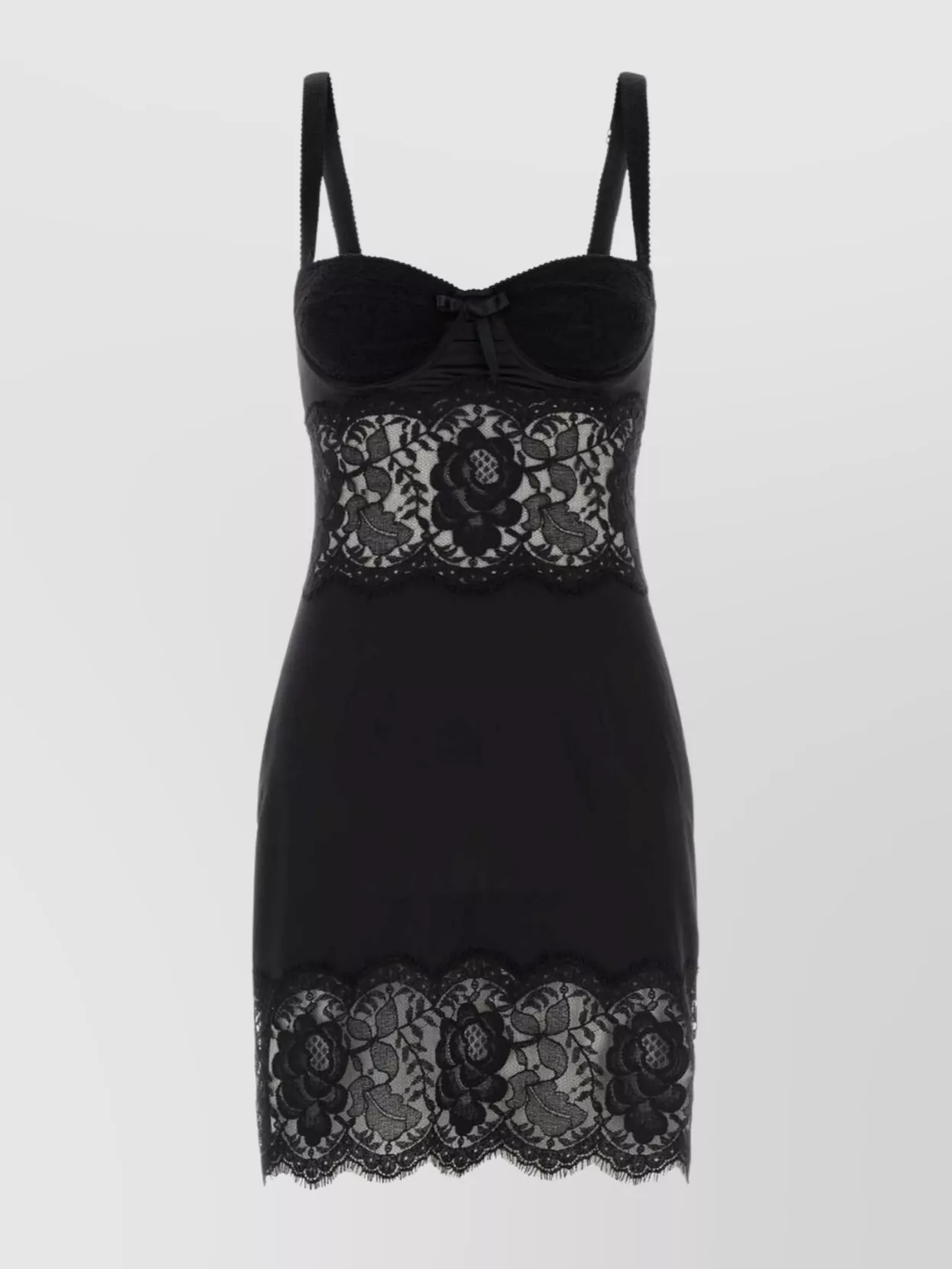 Dolce&Gabbana lace trim satin dress with spaghetti straps