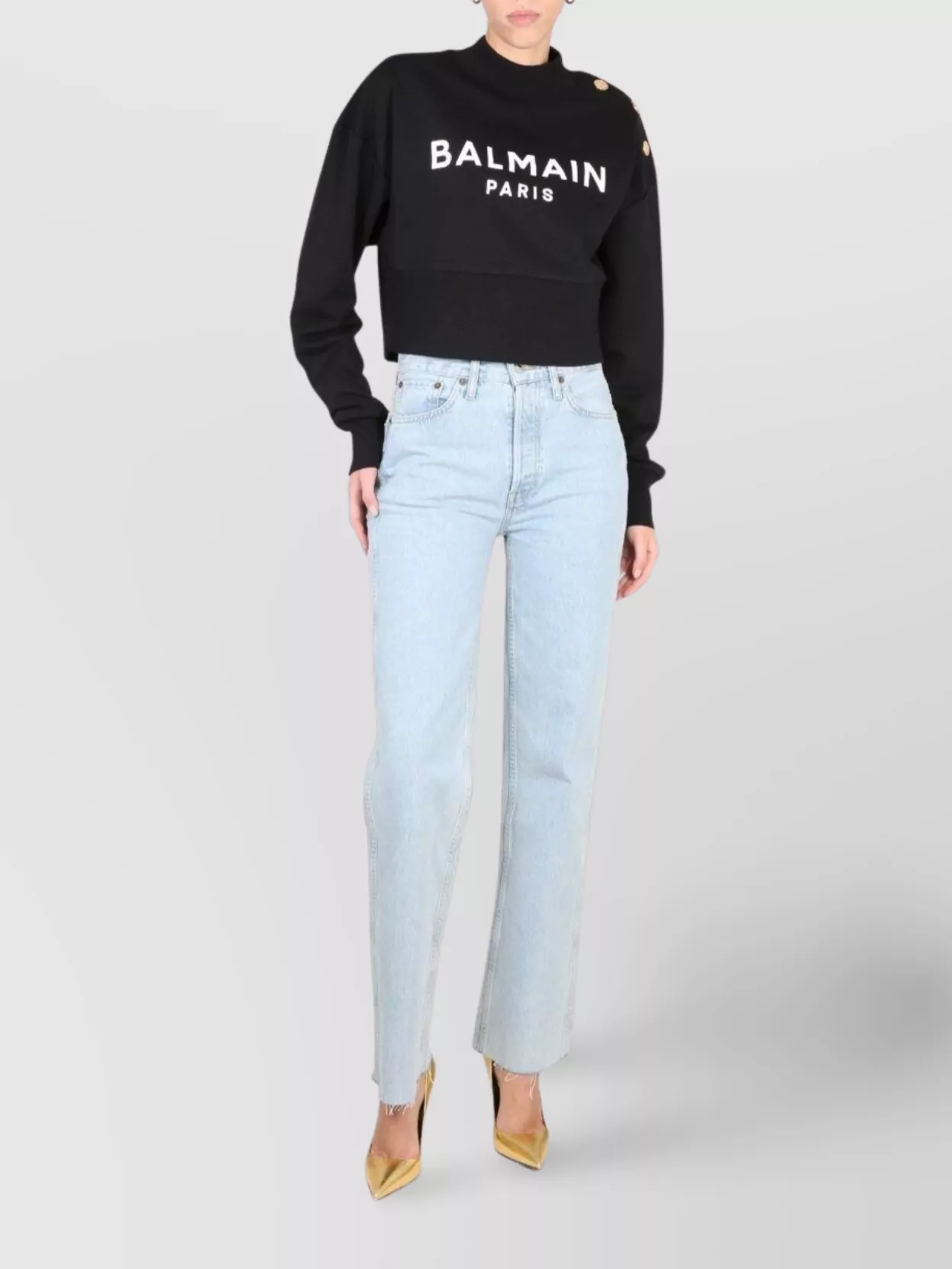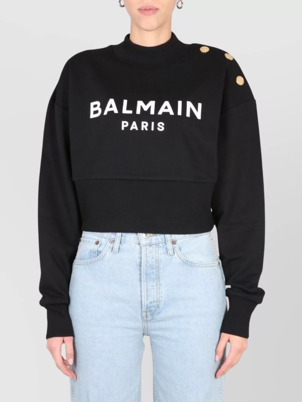 Balmain knitwear crewneck with front pockets and gold-tone buttons