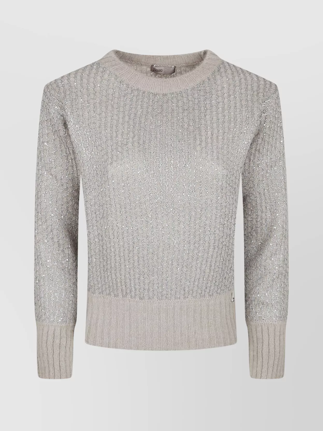 Herno v-neck sequin embellished knitwear with ribbed texture