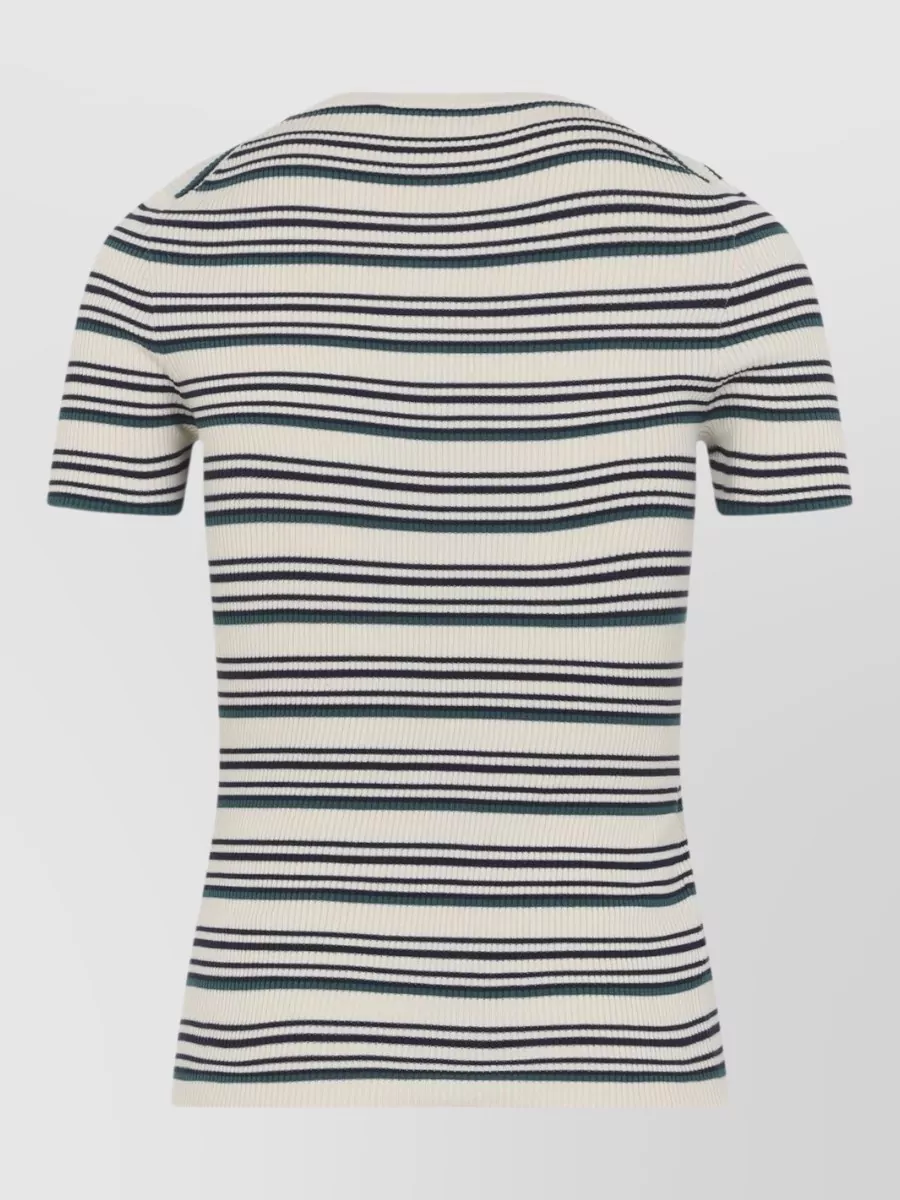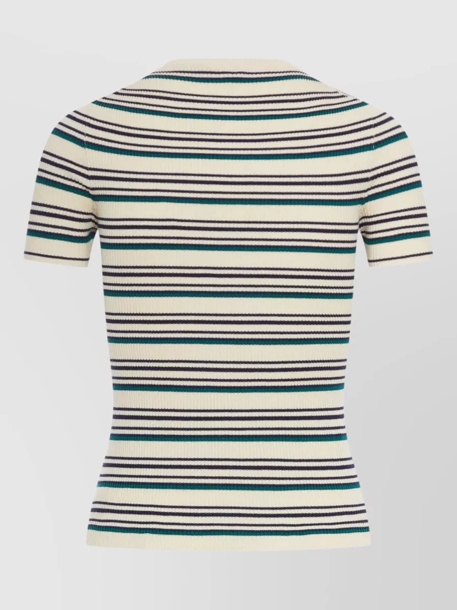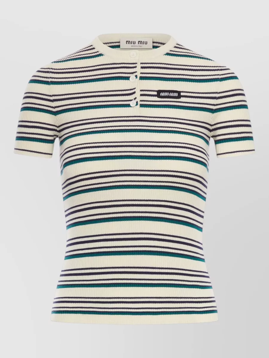 Miu Miu striped ribbed cotton short-sleeve crewneck sweater