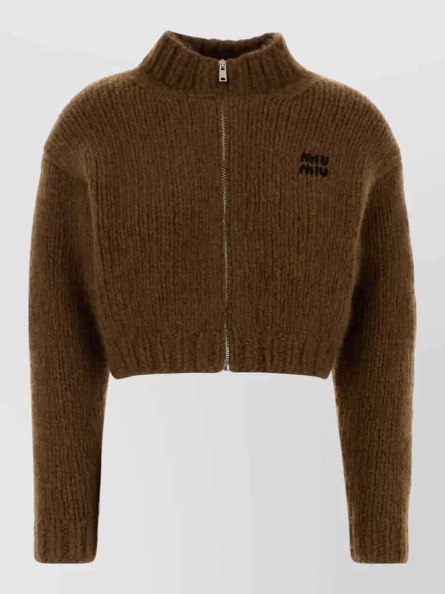 Miu Miu cashmere cardigan cropped high neck ribbed