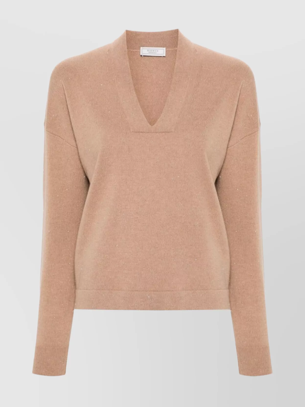 Peserico long sleeve v-neck ribbed cardigan with lurex
